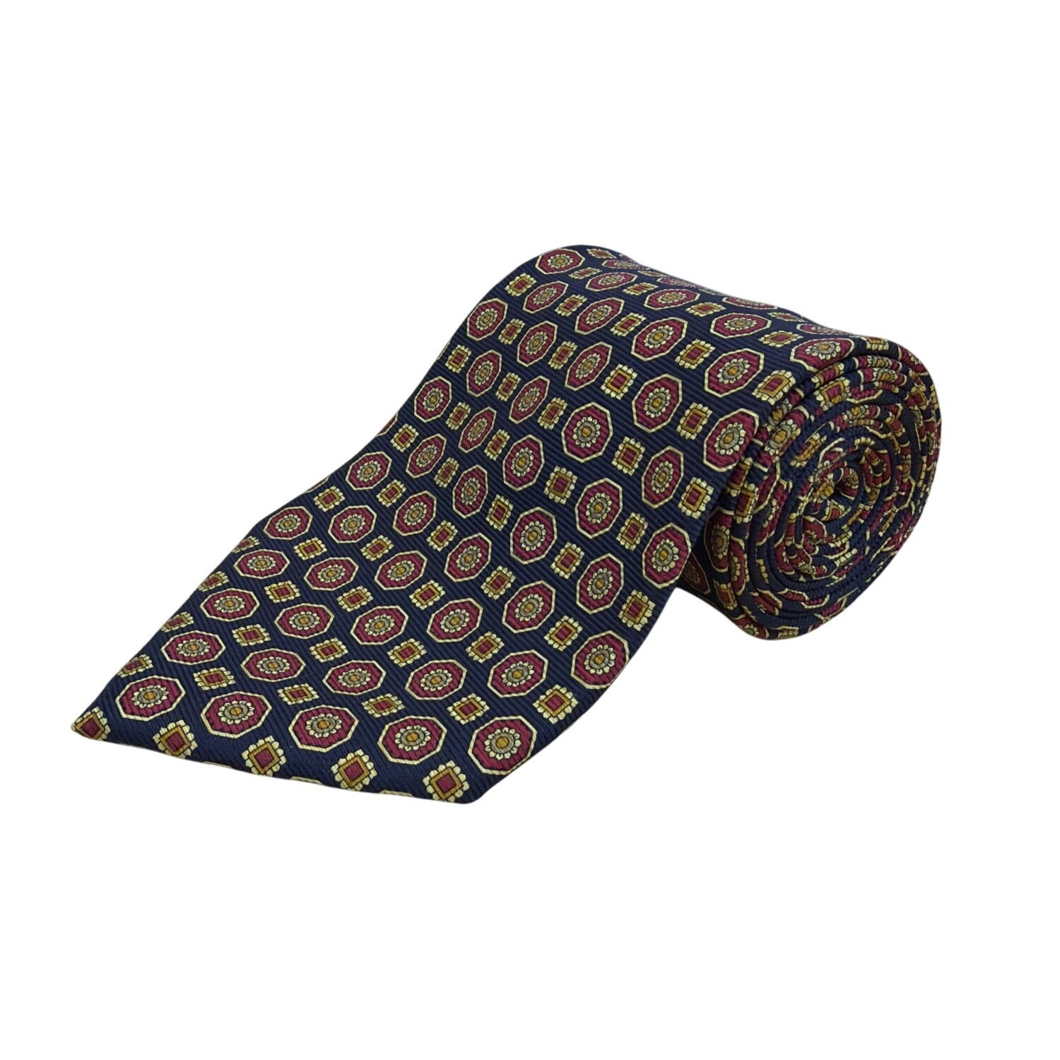 Vintage Brooks Brothers Navy Yellow & Red Silk Geometric Patterned Tie Classic