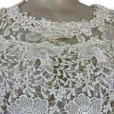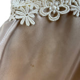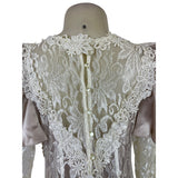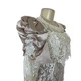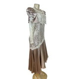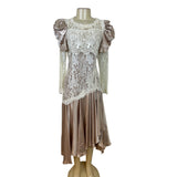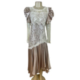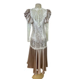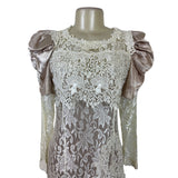 Vintage Cachet Women’s Beige & Ivory Lace Satin Puff Sleeve Midi Dress