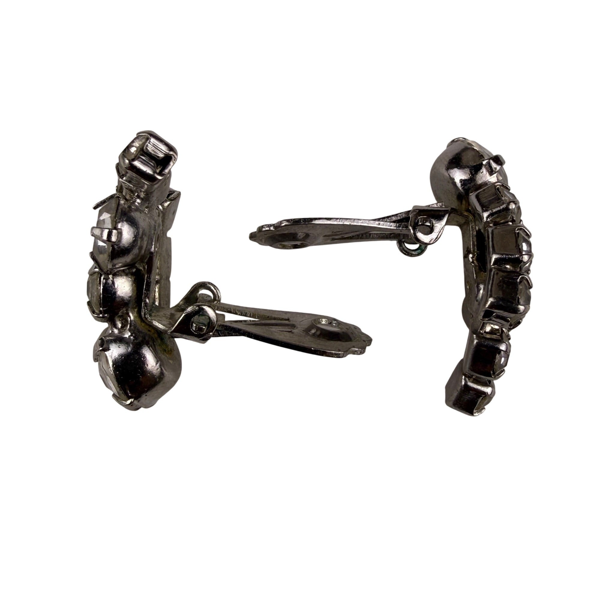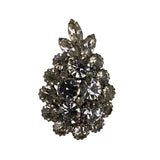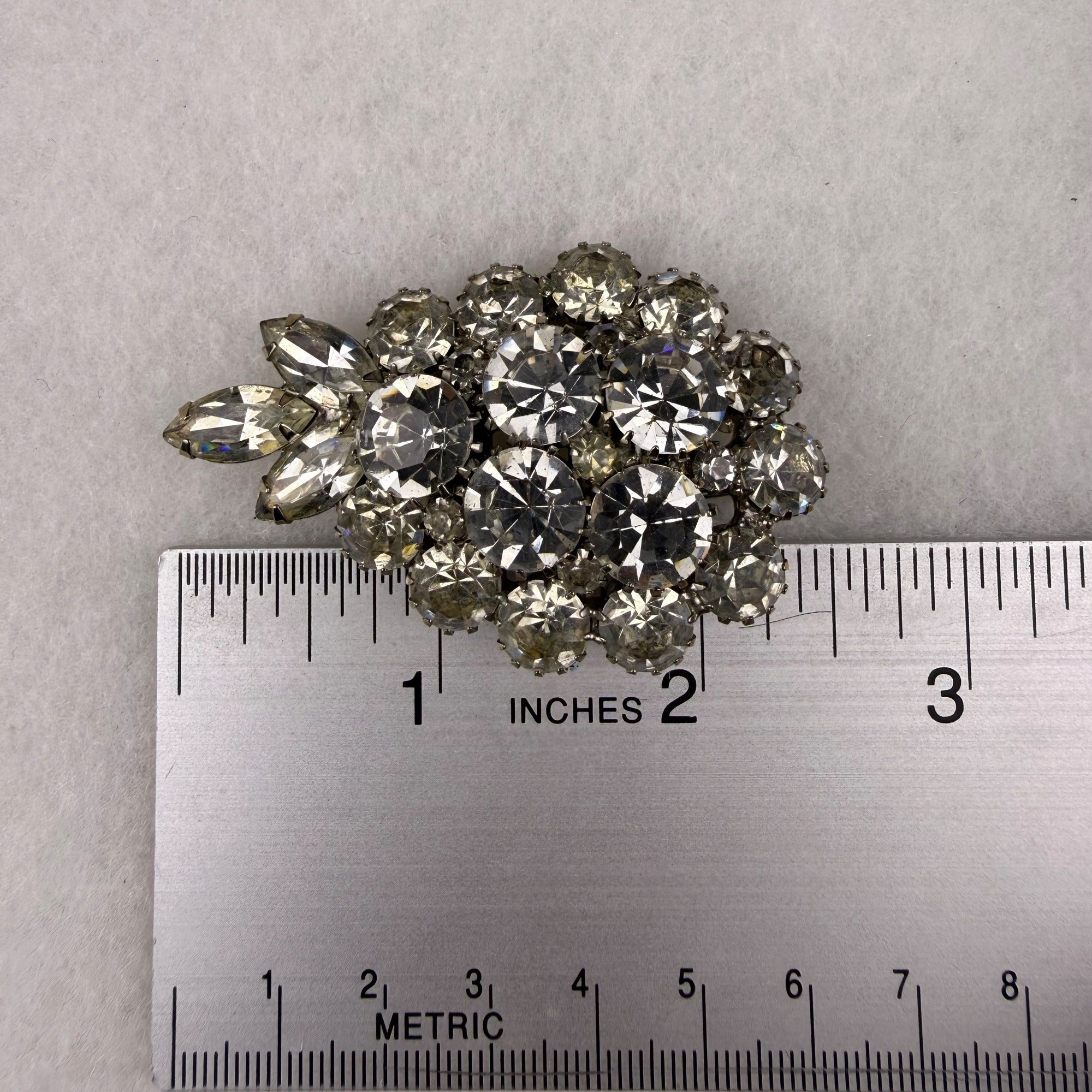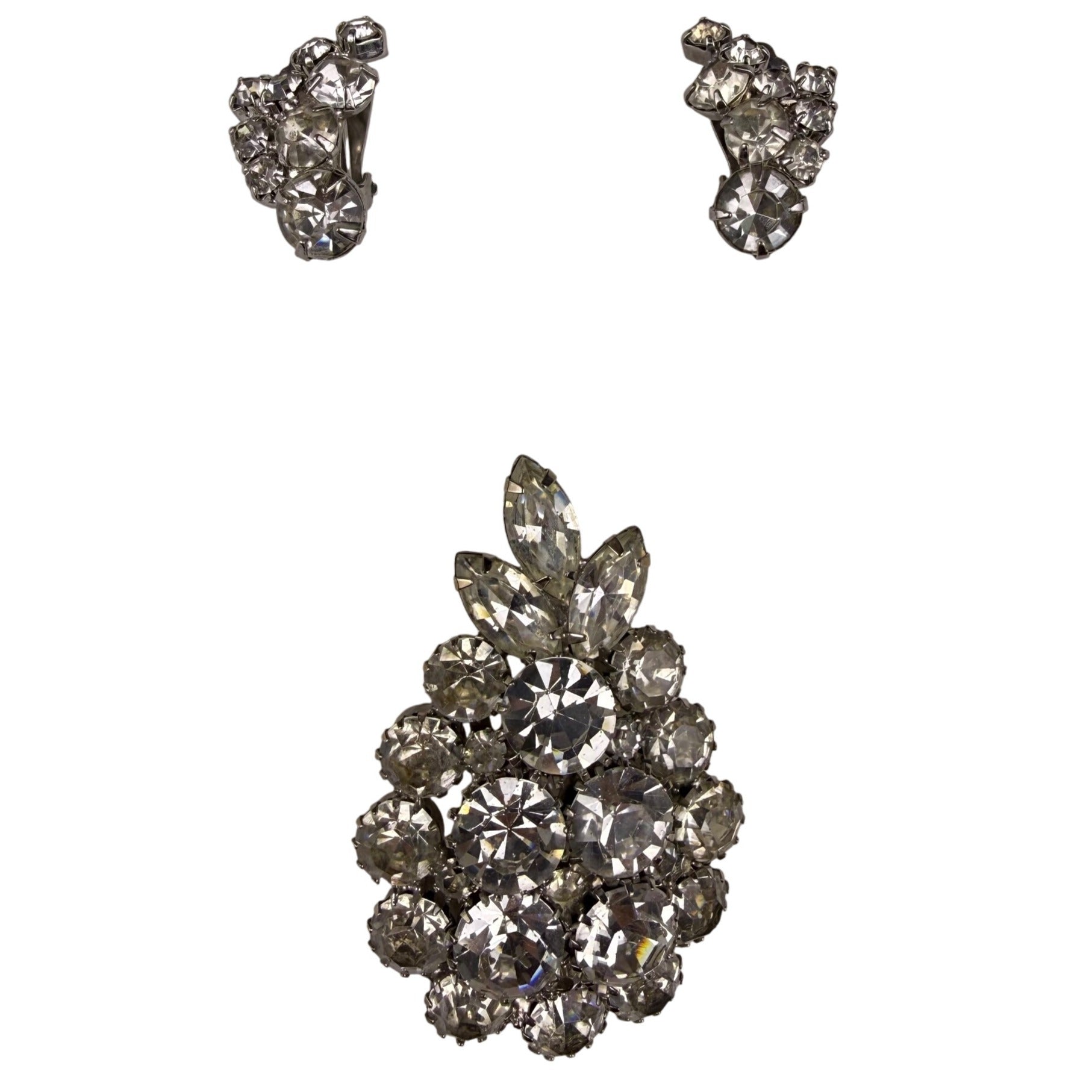 Vintage Cluster Rhinestone Pin & Clip-On Earrings Silver Tone Leaf Motif Set