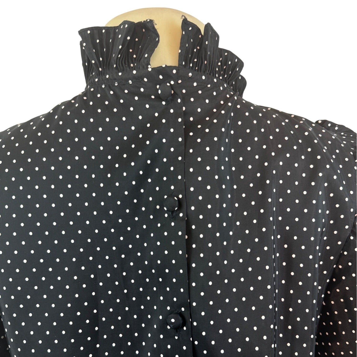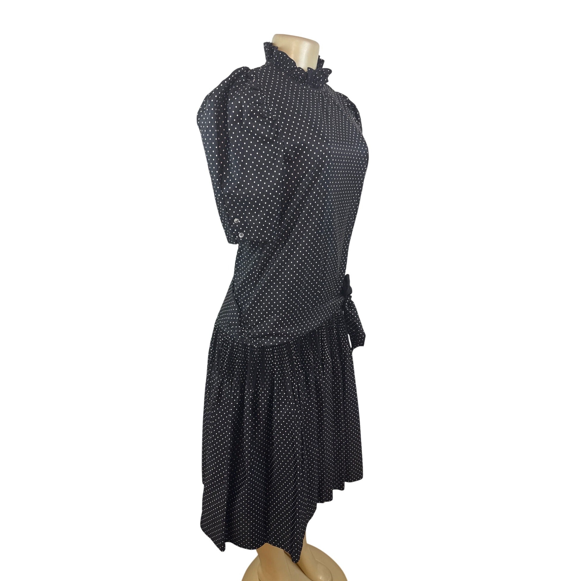 Vintage David Charles Black Polka Dot Dress With Ruffled Neckline Size S/14 yrs