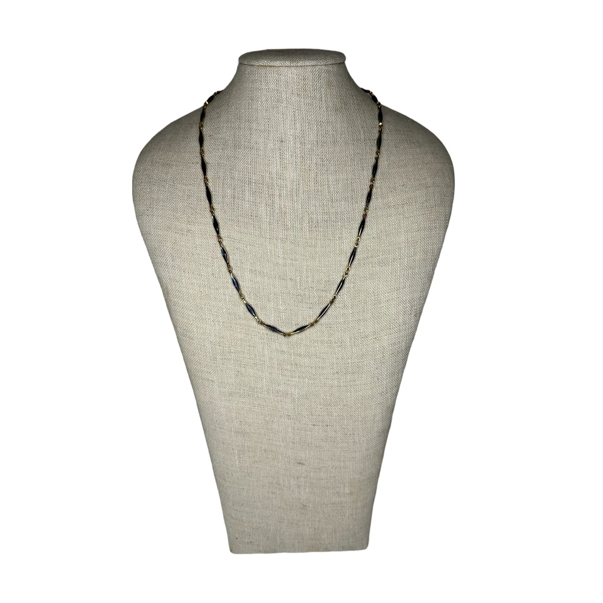 Vintage Delicate Elongated Blue Glass Necklace 24