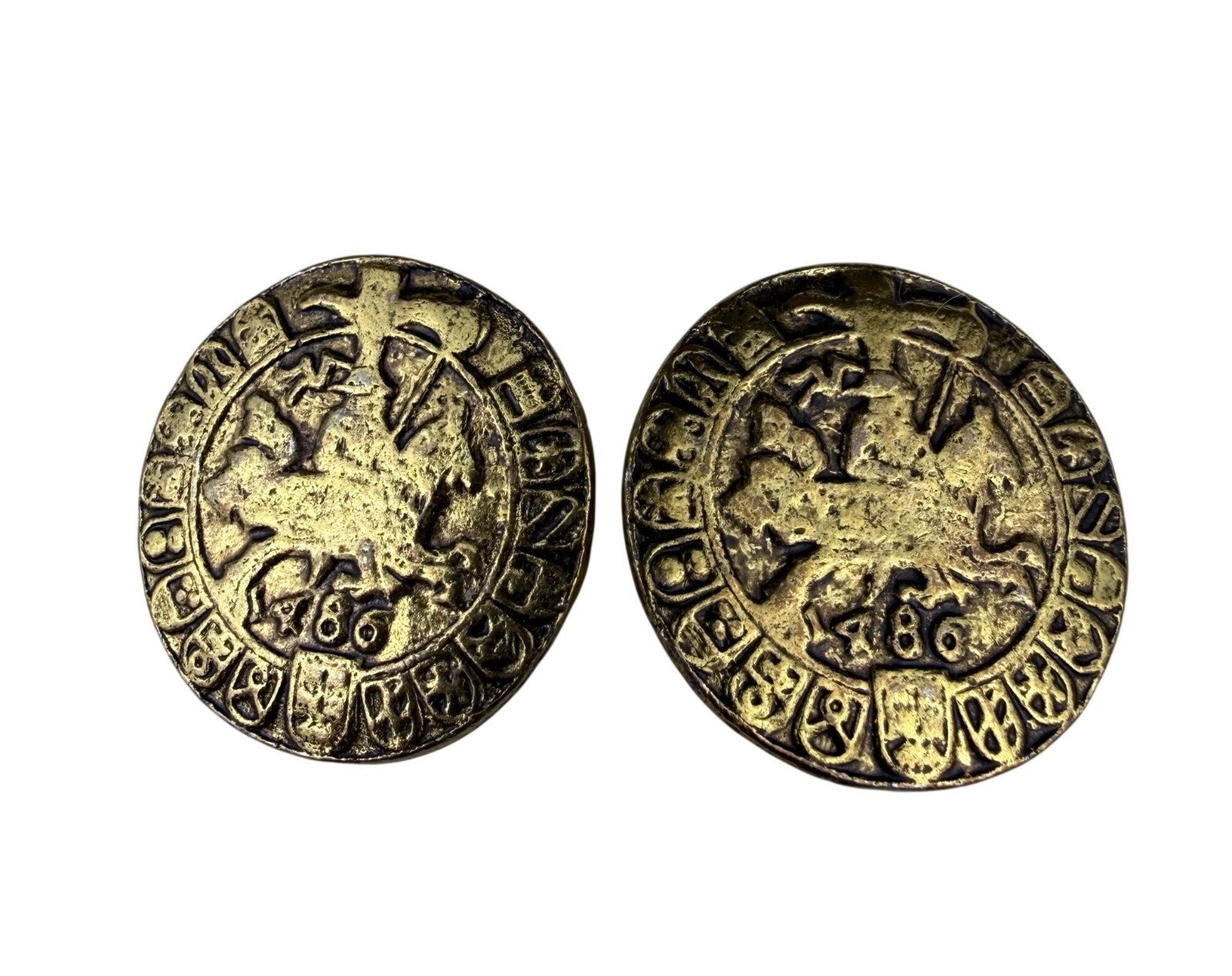 Vintage French coin theme Unknown Womens Gold Tone Metal Clip-On Earrings Round