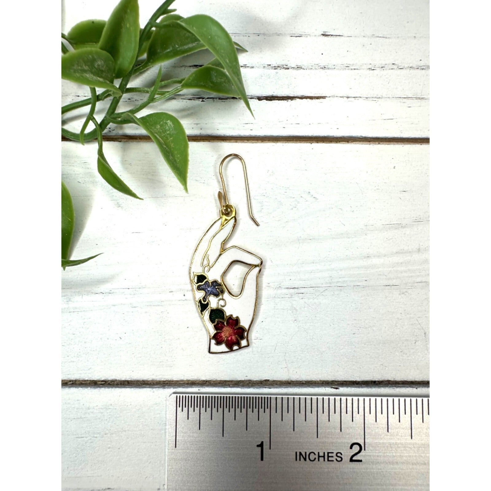 Vintage Gold Tone Enameled Flowers OK Hand Design