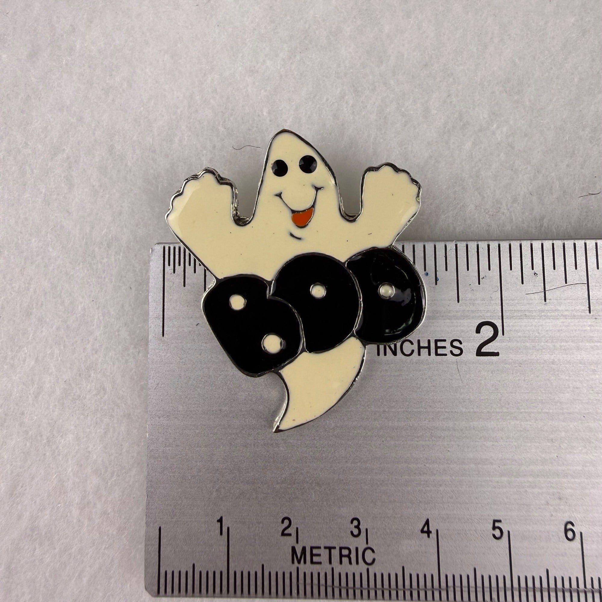 Vintage Halloween Ghost "Boo" Pin Lapel Brooch Enamel Metal White & Black