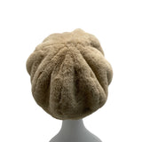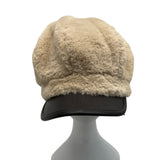 Vintage Inspired Fur Beige Newsboy Cap With Black Faux Leather Brim