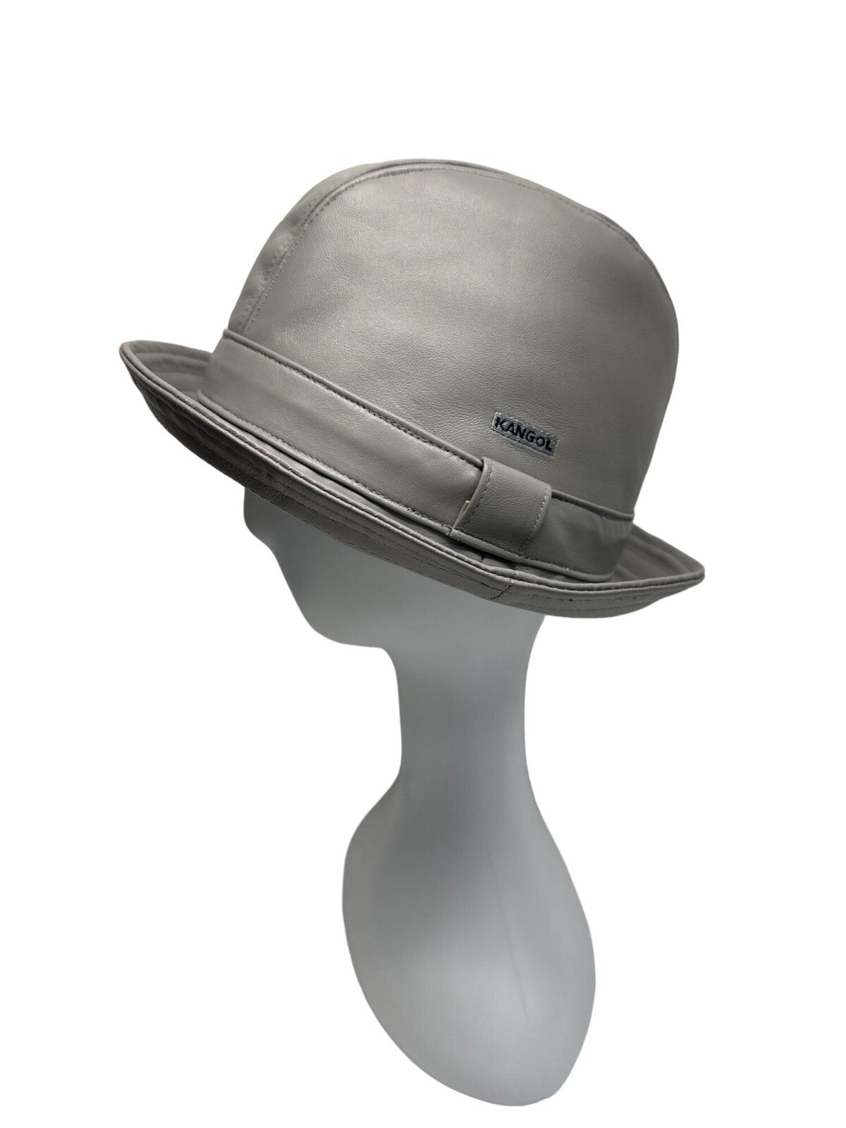 Vintage Kangol Unisex Gray Leather Fedora Hat Sz L - 17in Head Cirunmference