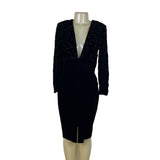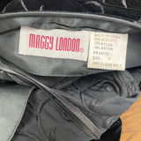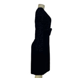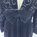 Vintage Maggy London Black Velvet Bow Embroidered Long Sleeve Midi Dress Size 10