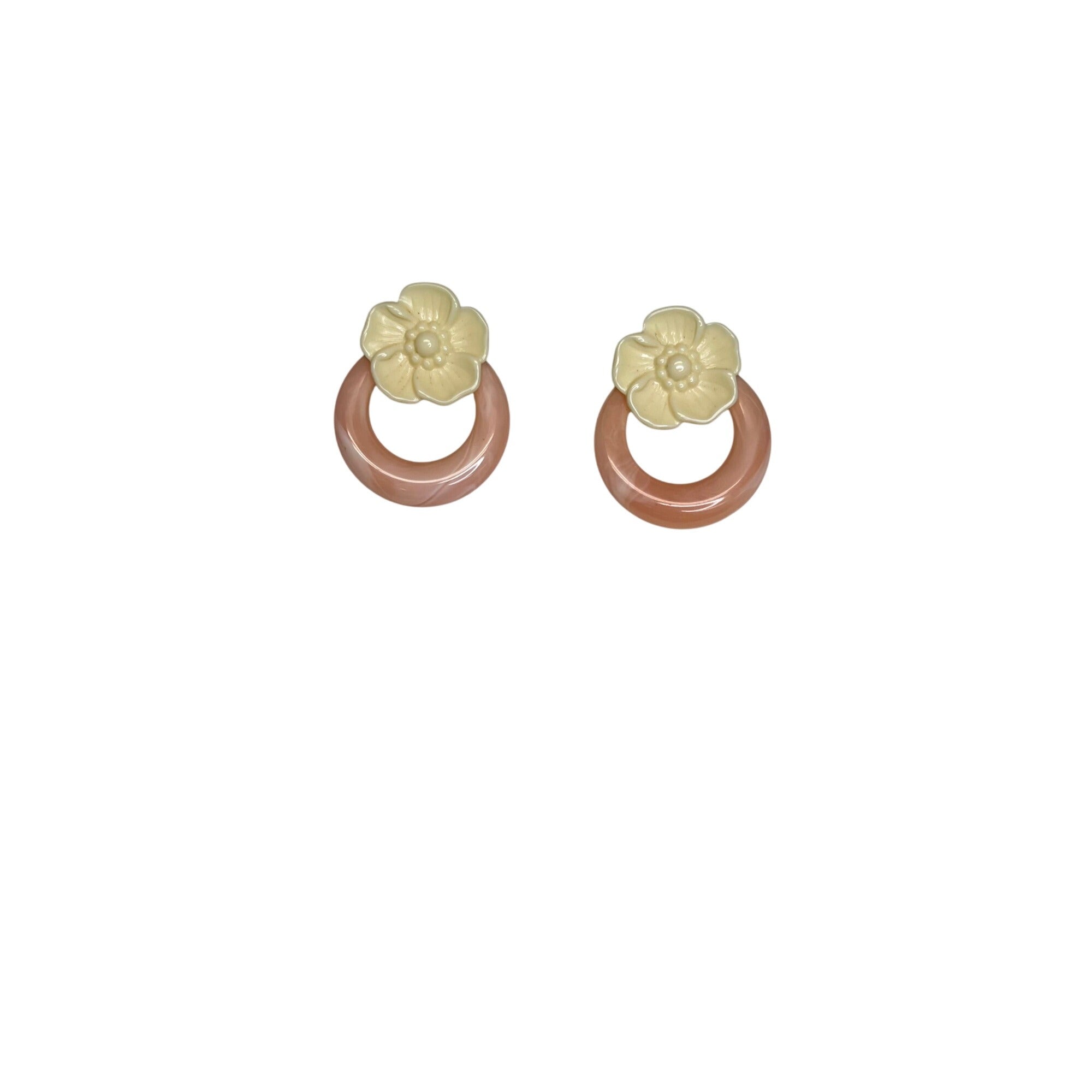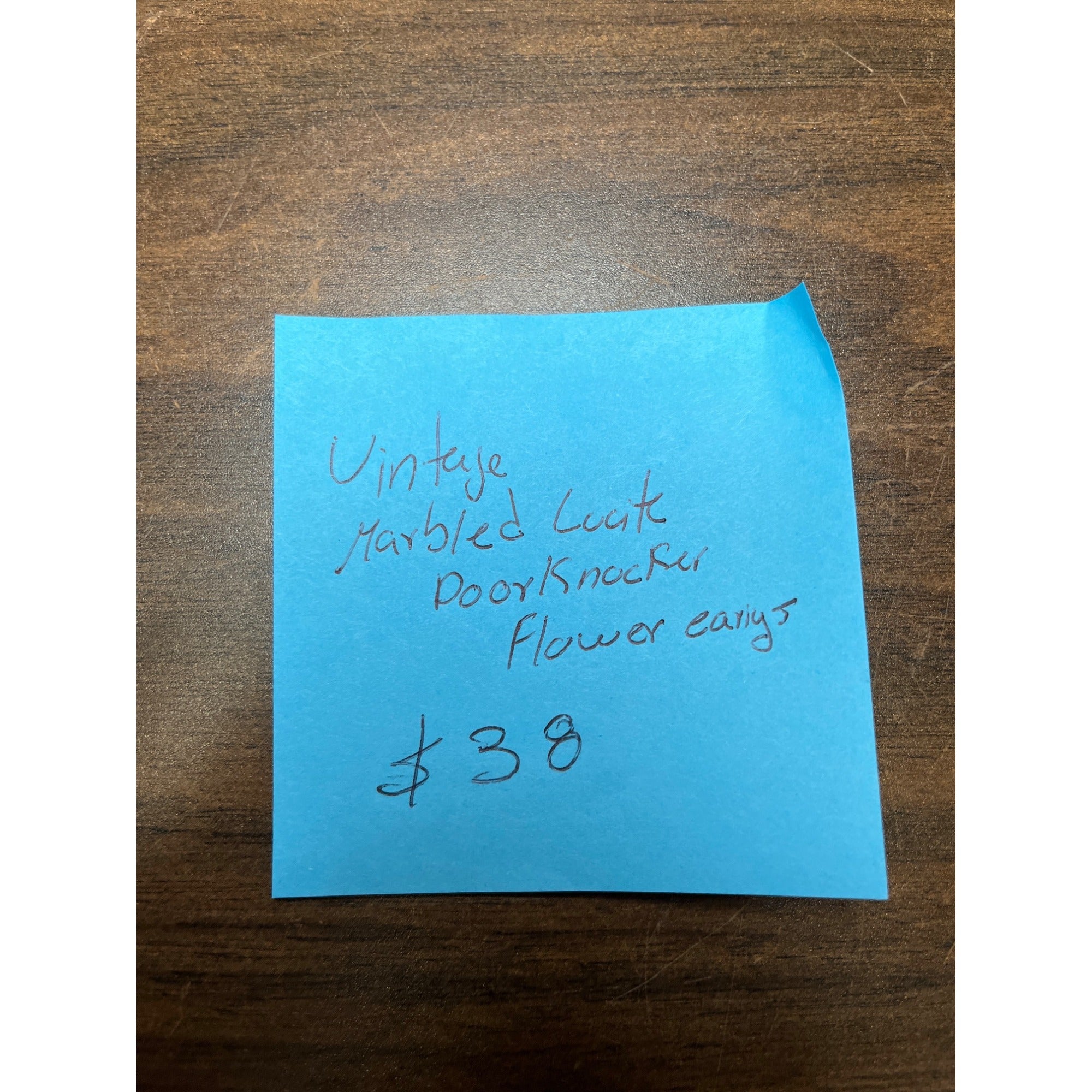 Vintage Marbled Look Womens Pink/Yellow Resin Floral Doorknocker Earrings