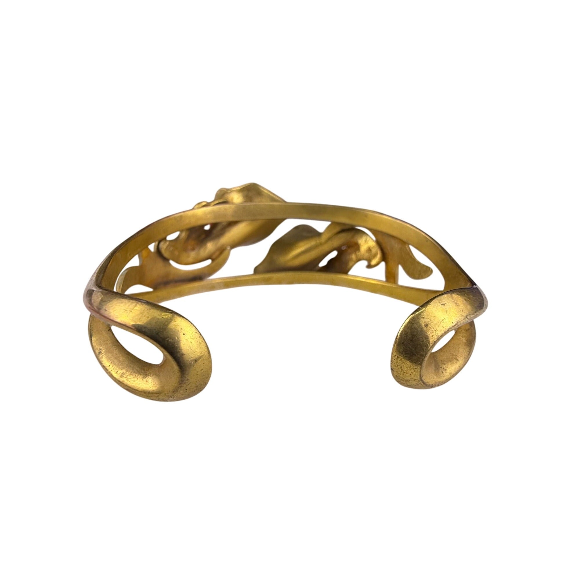 Vintage Mexico 950 Amethyst Gold Tone Cuff Bracelet Floral Design Adjustable