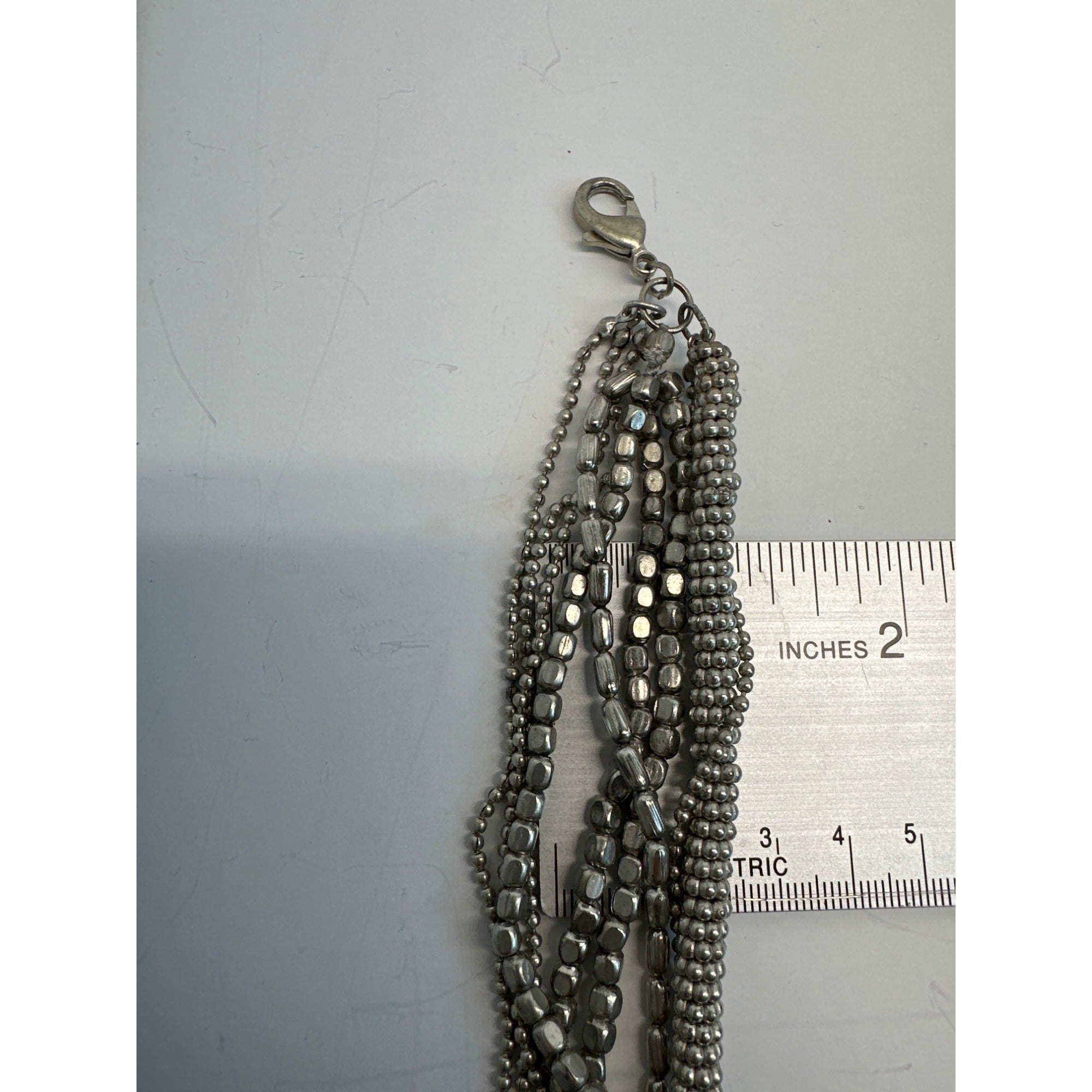 Vintage Multi Strand Metal Beads Silver Tone Chain Necklace - 37in