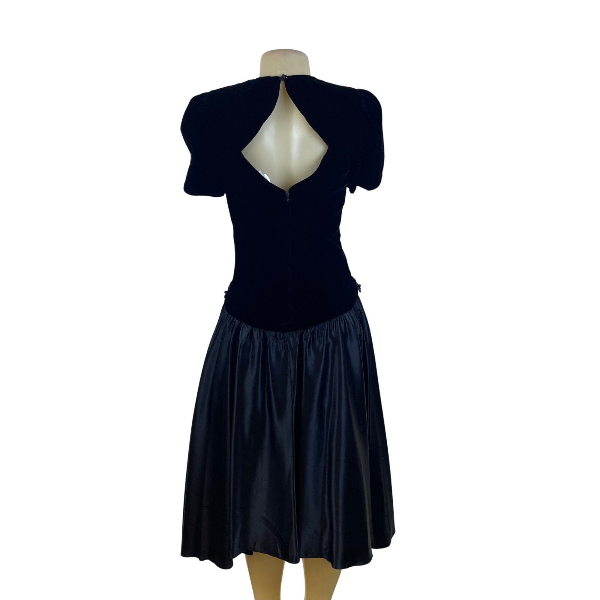 Vintage Niki Black Velvet Keyhole Back Midi Dress Beaded Accent Empire Size 6