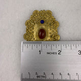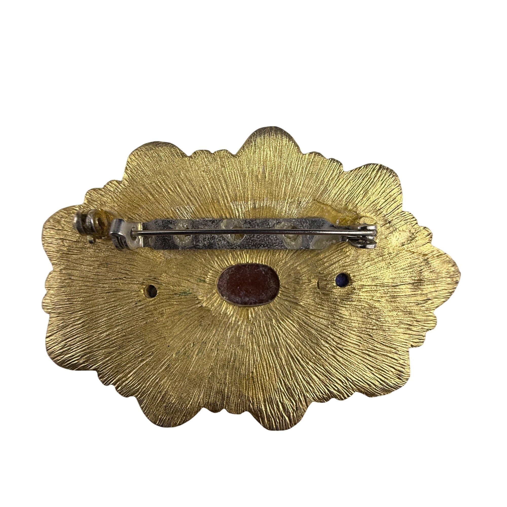 Vintage Ornate Gold Tone Brooch With Faux Carnelian & Lapis Stones