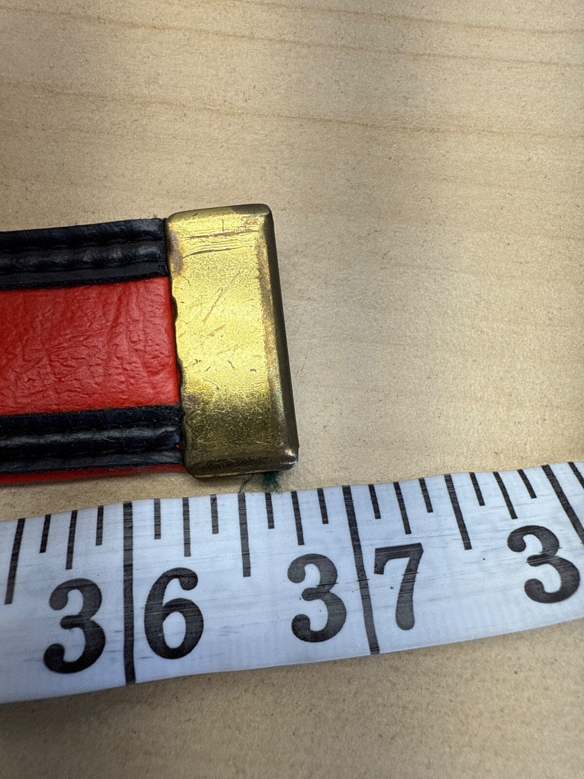 Vintage Red & Black Belt With Gold Buckle 37 in Long Adjustable Buckle