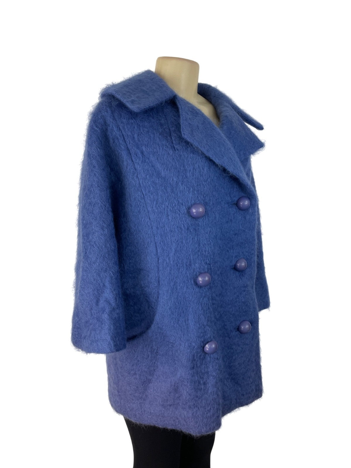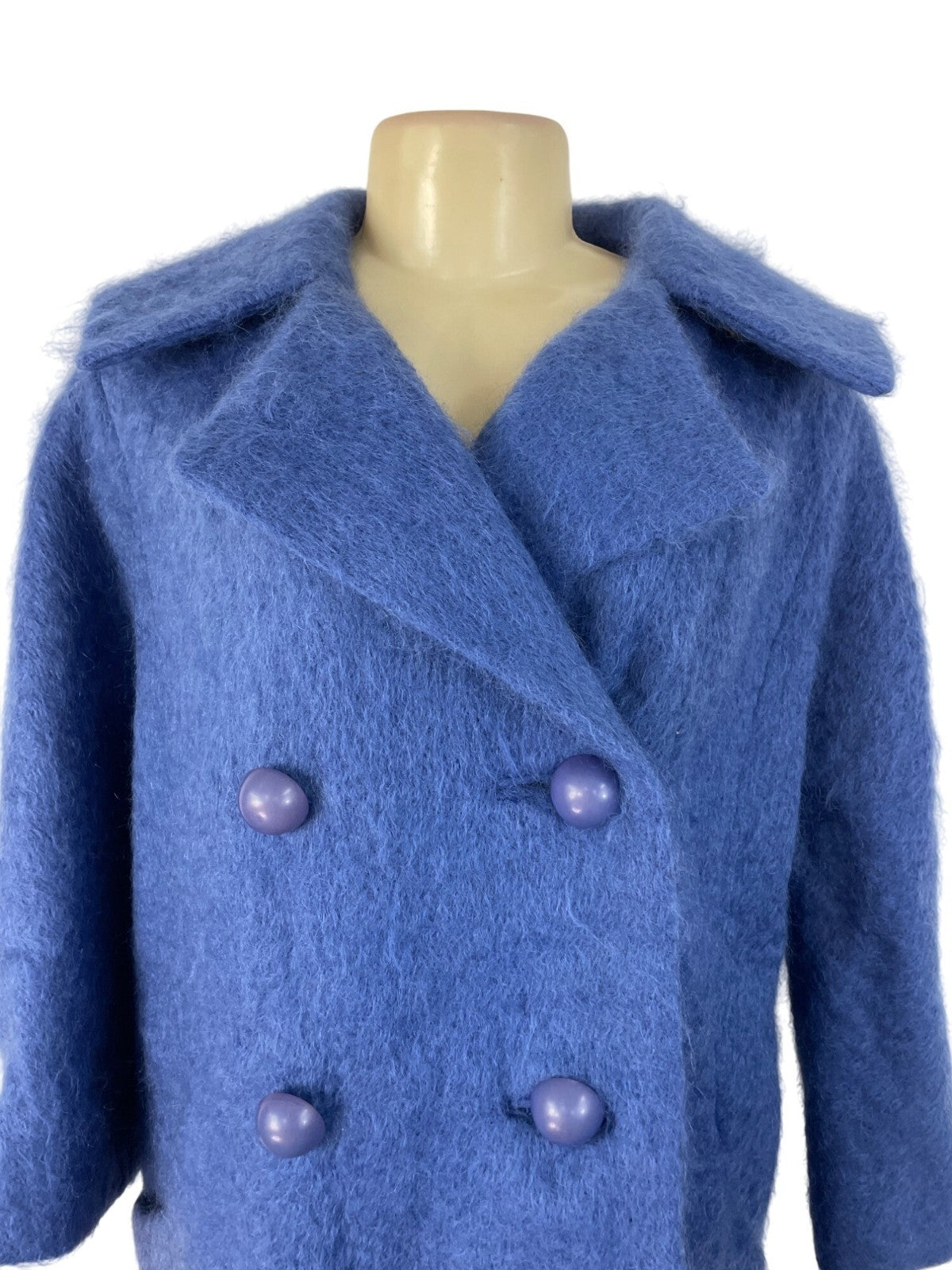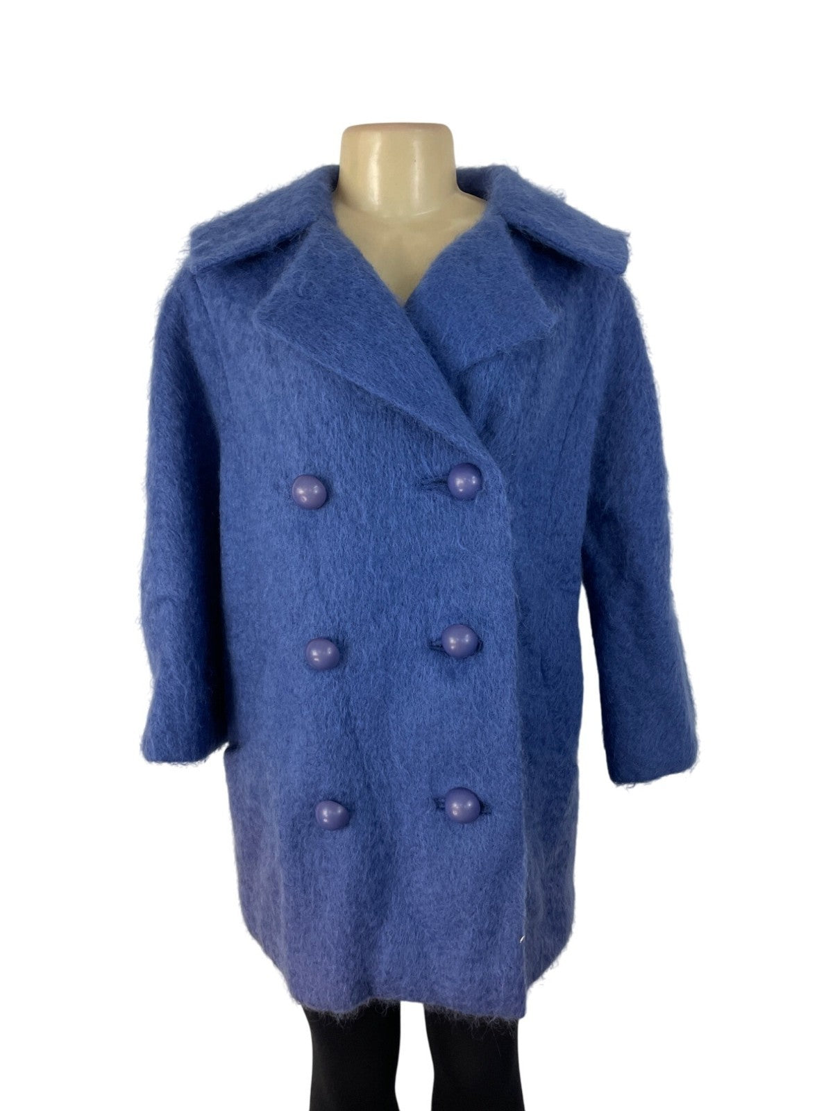 Vintage Sandison Womens Blue Double-Breasted Coat With Buttons