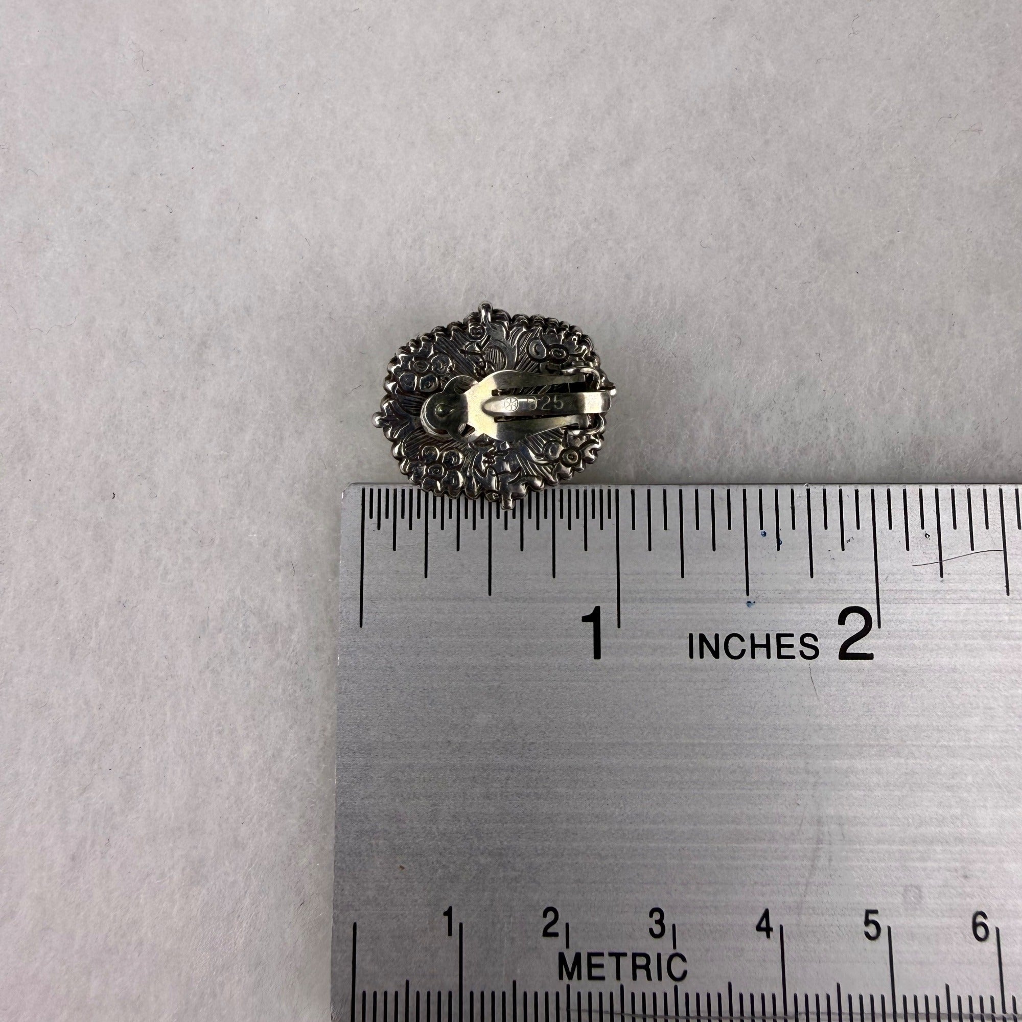 Vintage Sterling Silver 925 Clip-On Earrings Floral Etched MOP Cabochons Unique