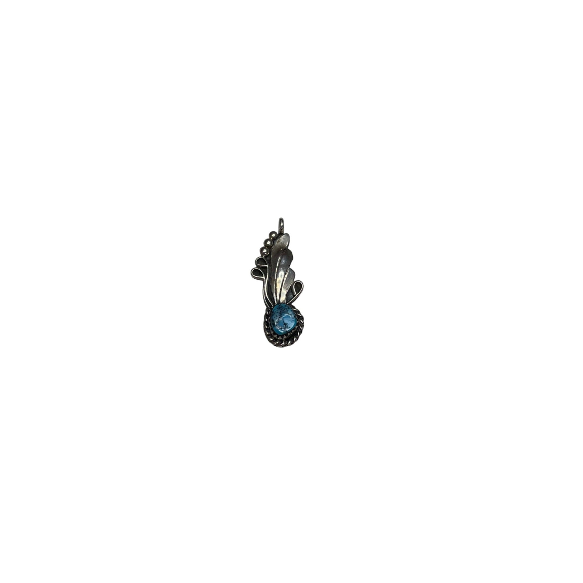 Sterling silver pendant with detailed design featuring a vibrant blue gemstone. Lightweight with a secure loop for easy use.