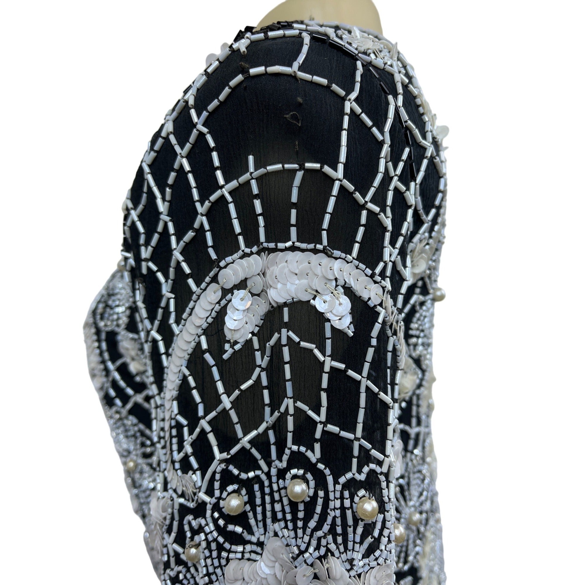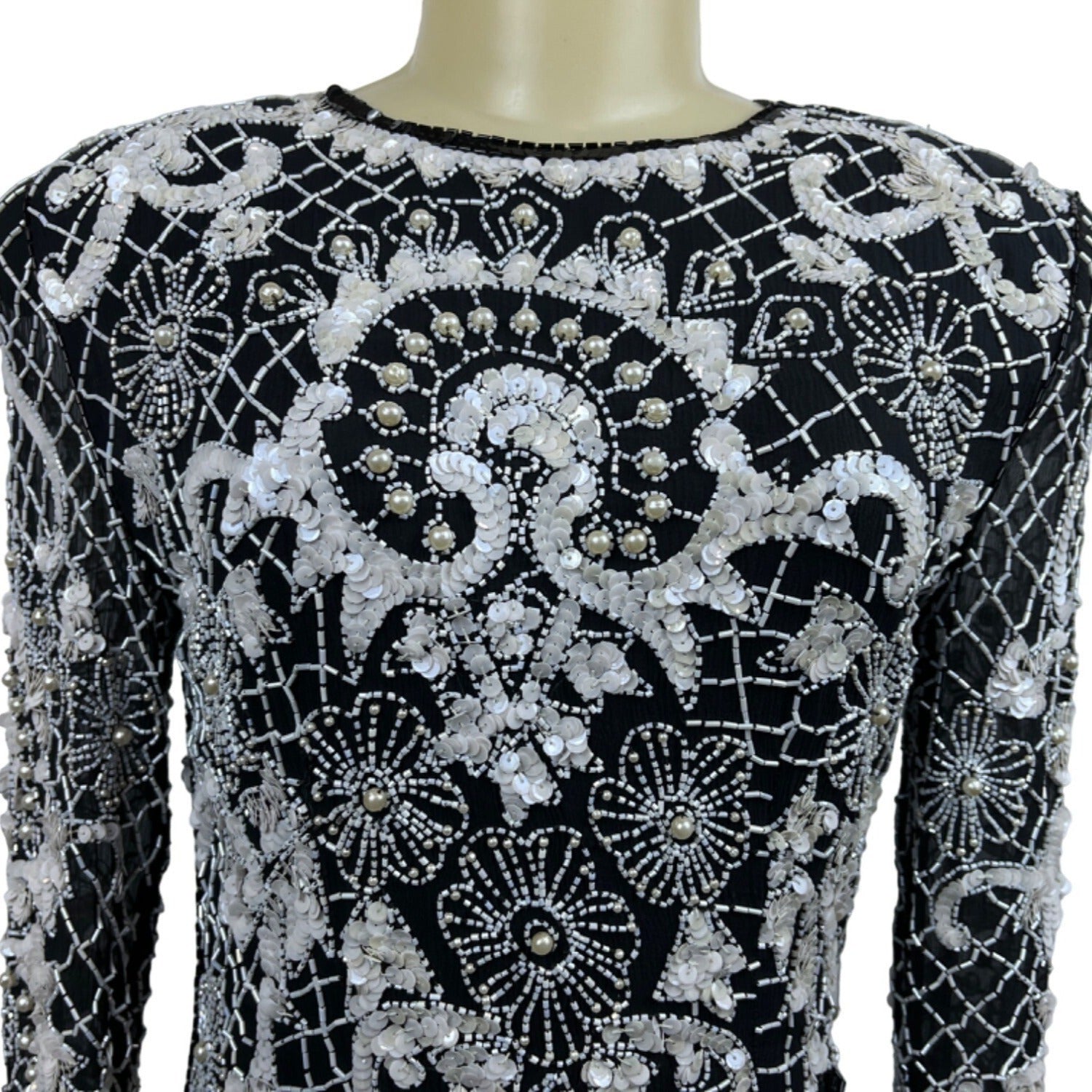 Vintage Sweet Lo Women’s Black and White Beaded Sequin Long Sleeve Dress Sz M New