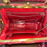 Vintage Unbranded Women's Red Croco Embossed Leather Evening Clutch Bag Size M