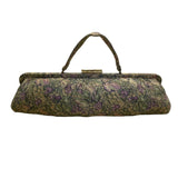 Vintage Women’s Green & Purple Floral Brocade Metal Bamboo Clasp Clutch Bag