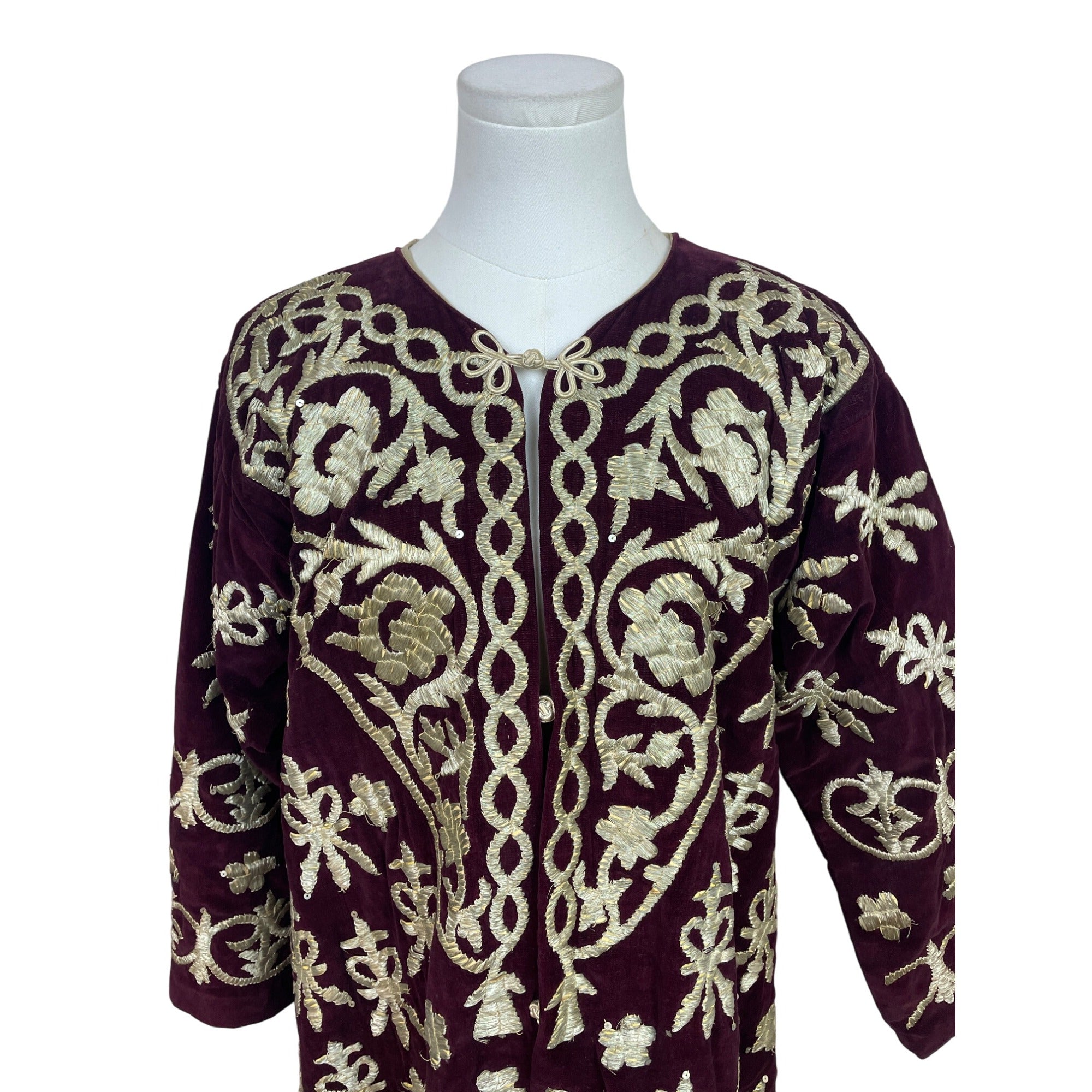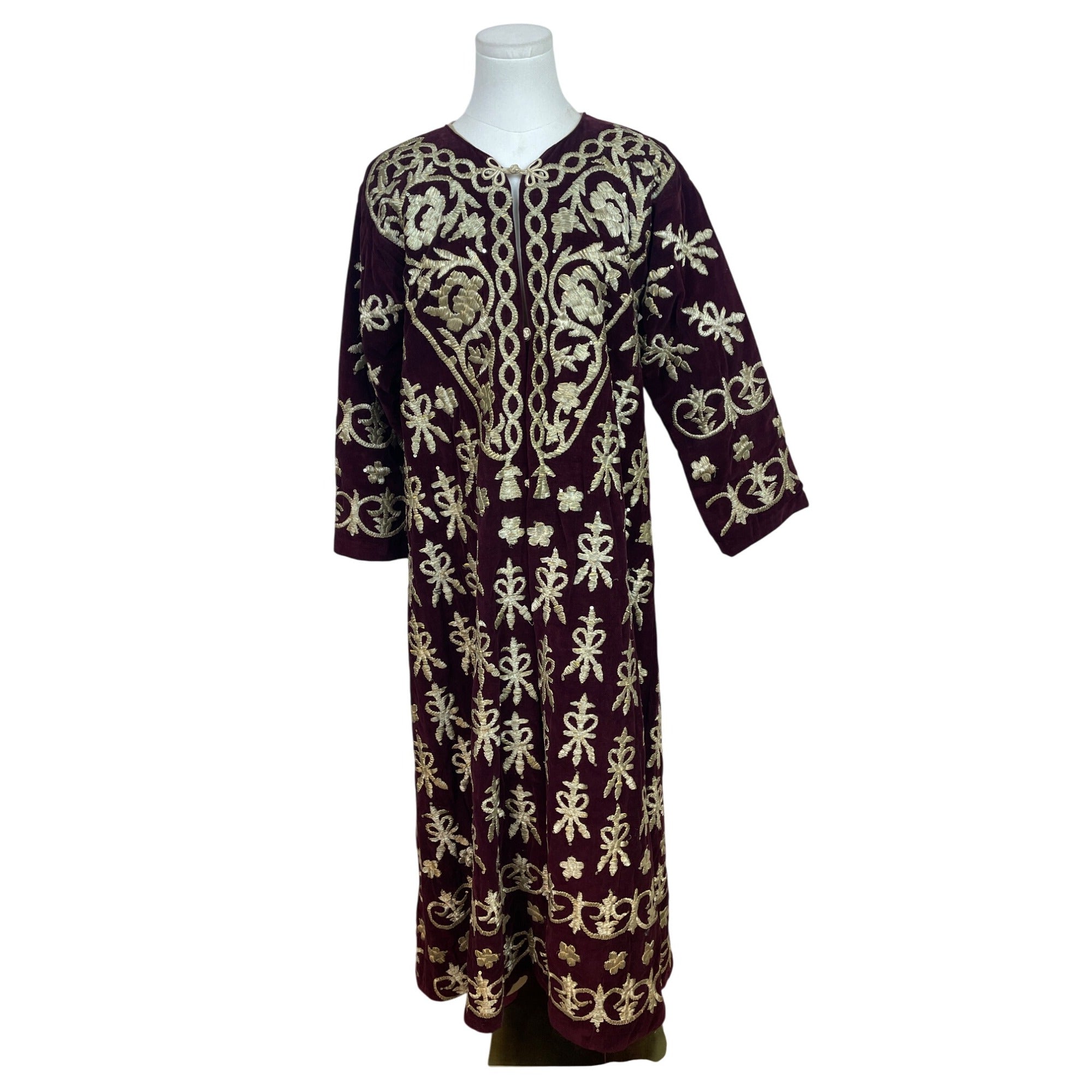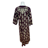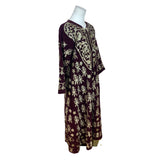 Vintage Women’s Velvet Burgundy & Gold Tone Embroidered Kaftan Dress