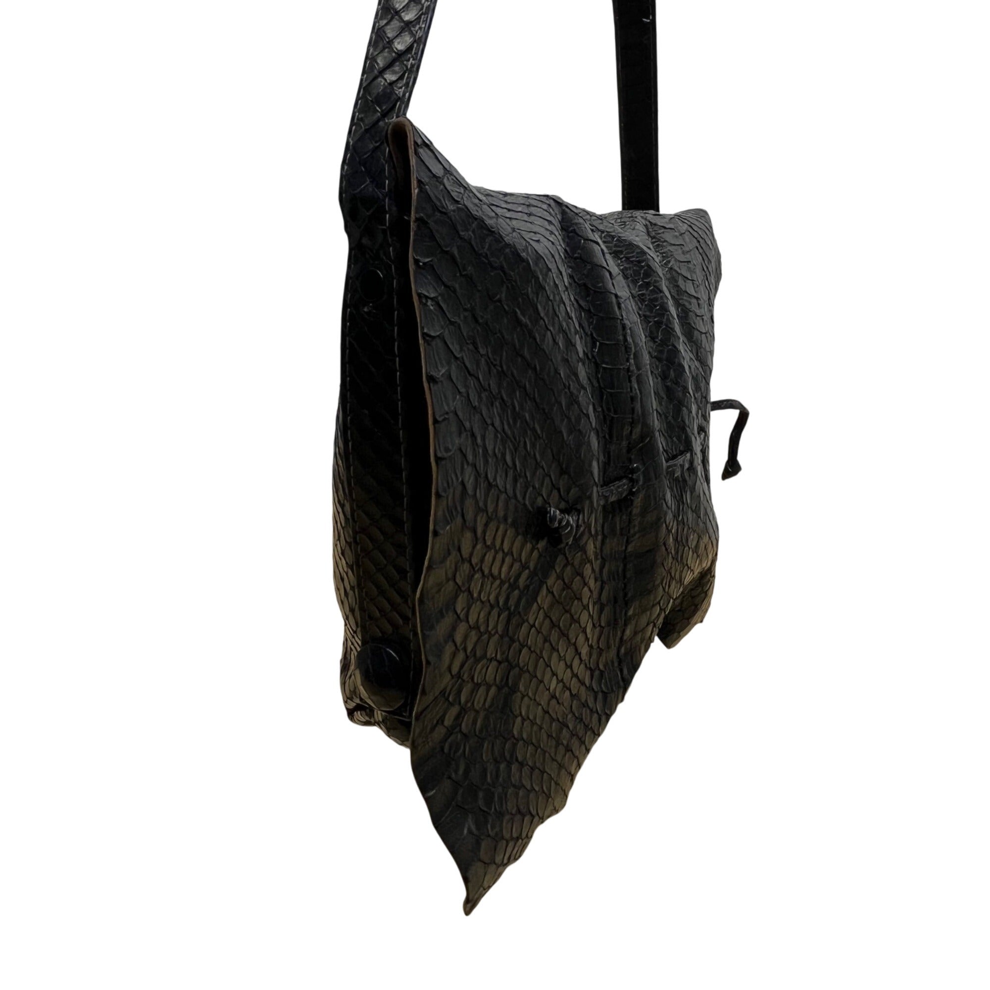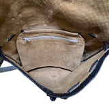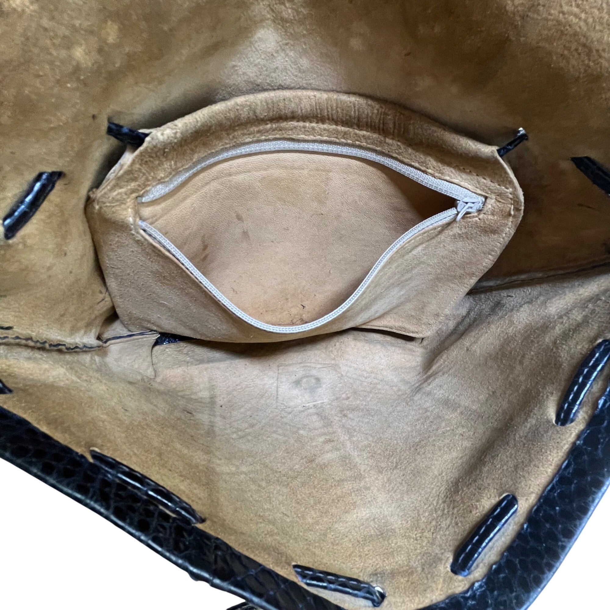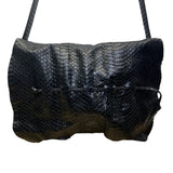 Vintage Womens Black Faux Snake Skin Suede Interior Crossbody Shoulder Bag