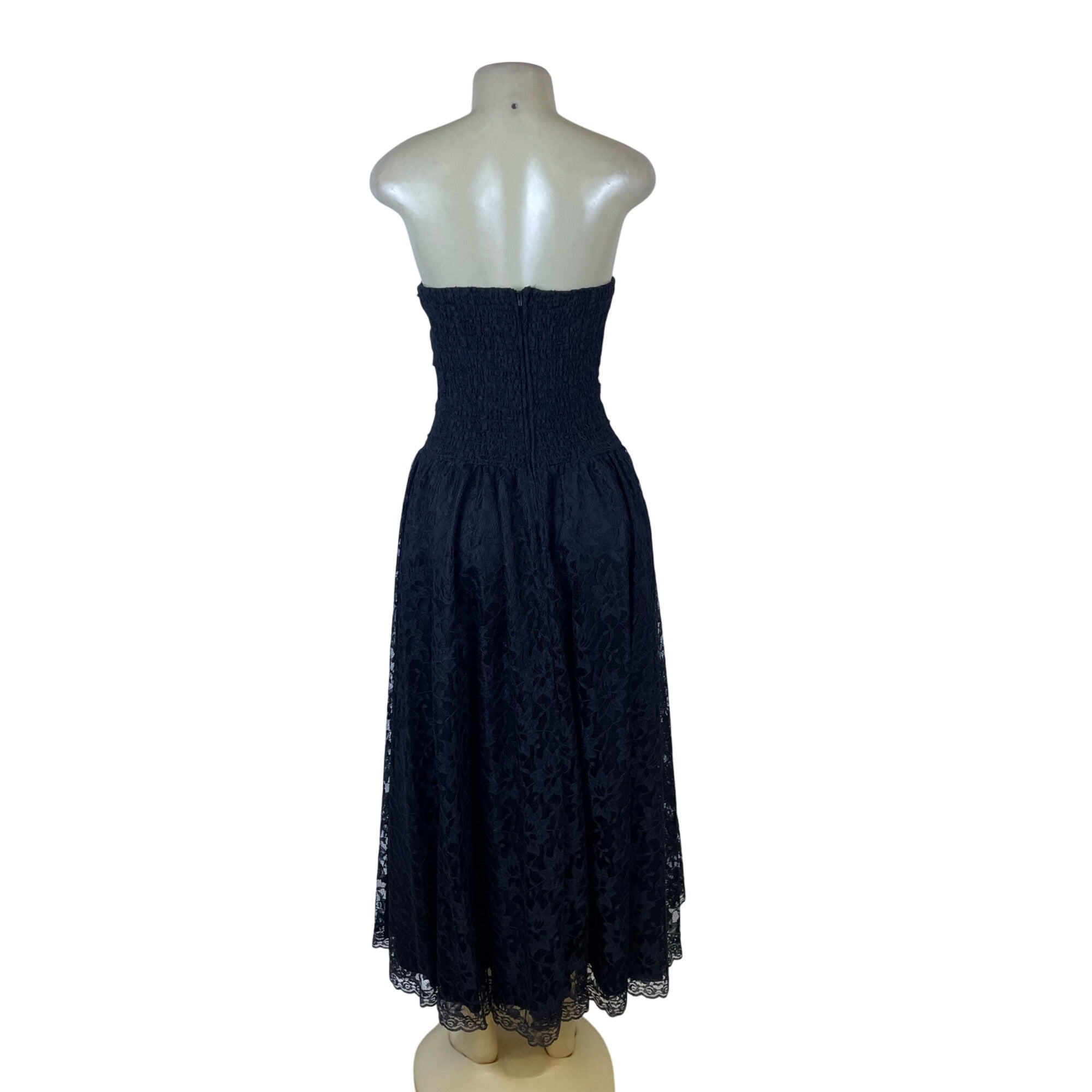 VintageStrapless Black Lace Womens Midi Dress Elegant Evening Formal Wear