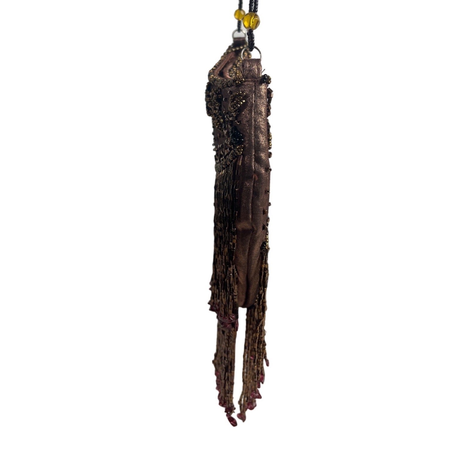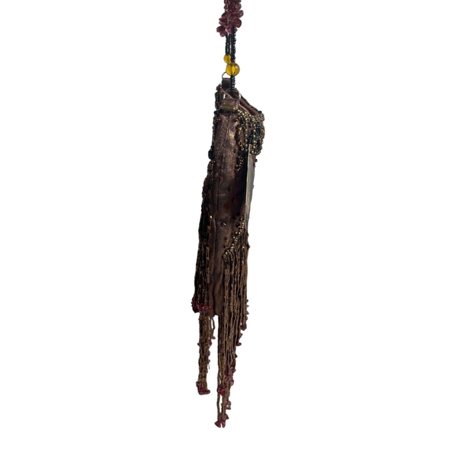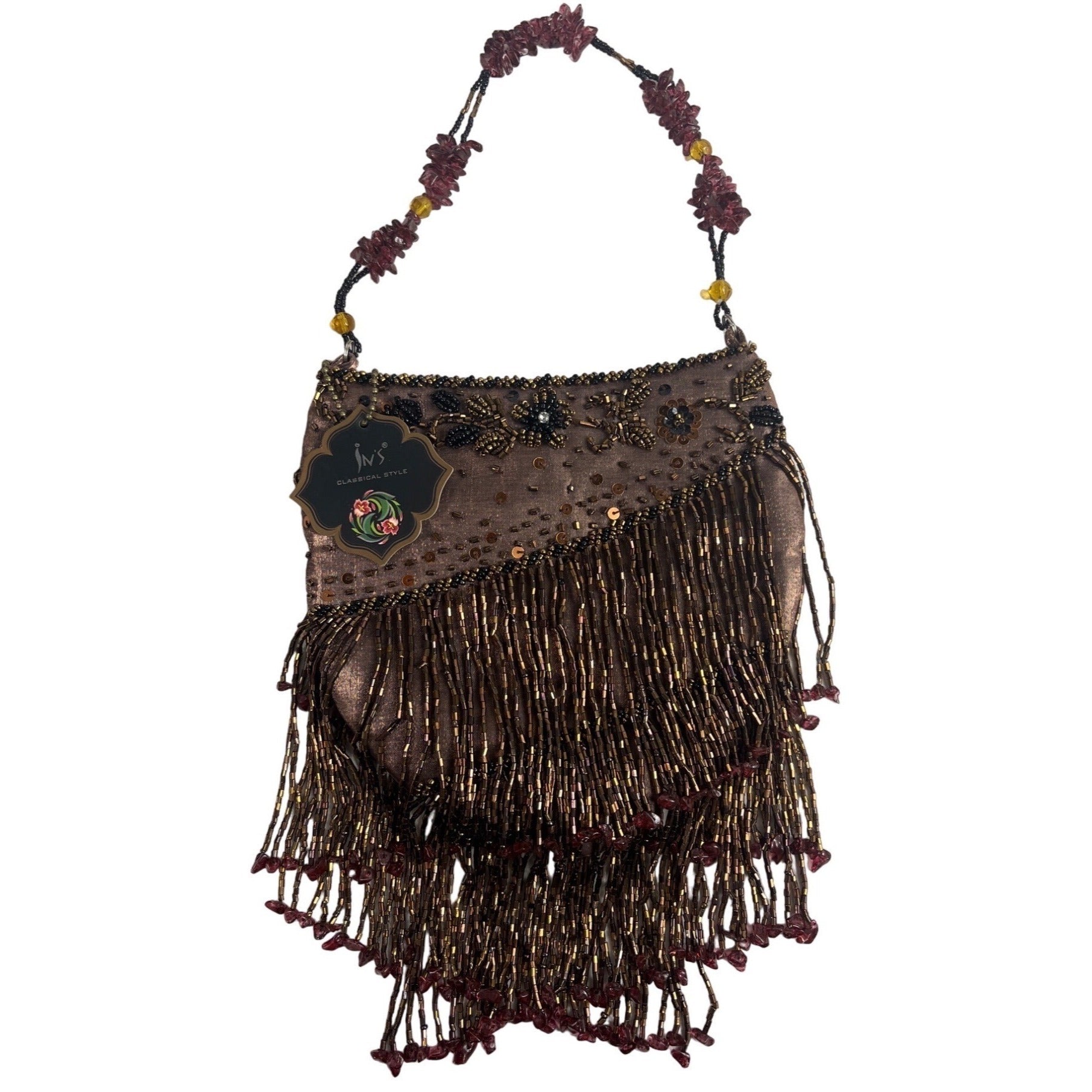 Vtg 80s In’s Classical Style Women's Brown Floral Beads Shoulder Bag Size S