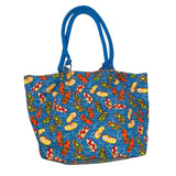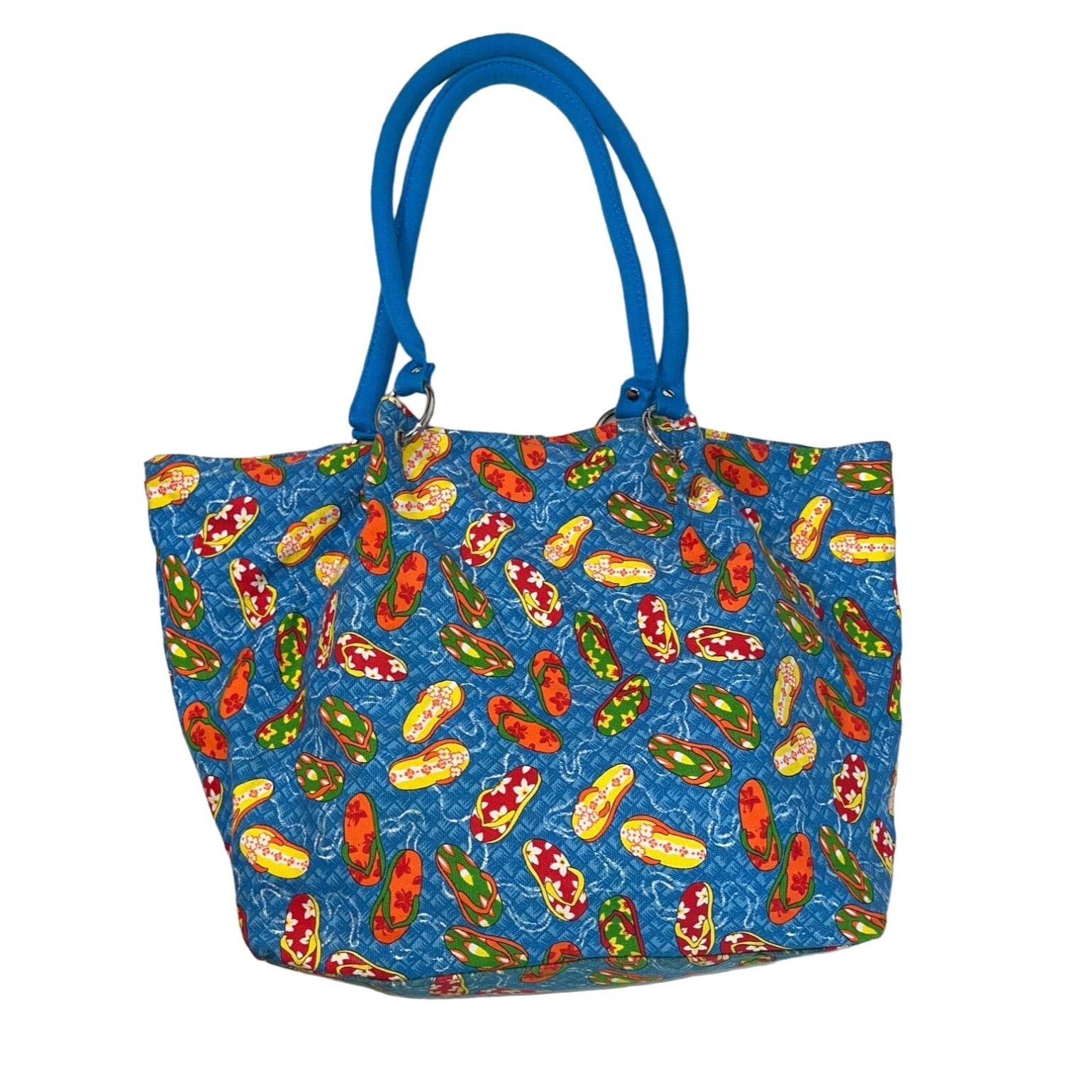 Vtg Avon Women’s Blue Flip Flop Pattern Shoulder Bag Magnetic Closure Sz M