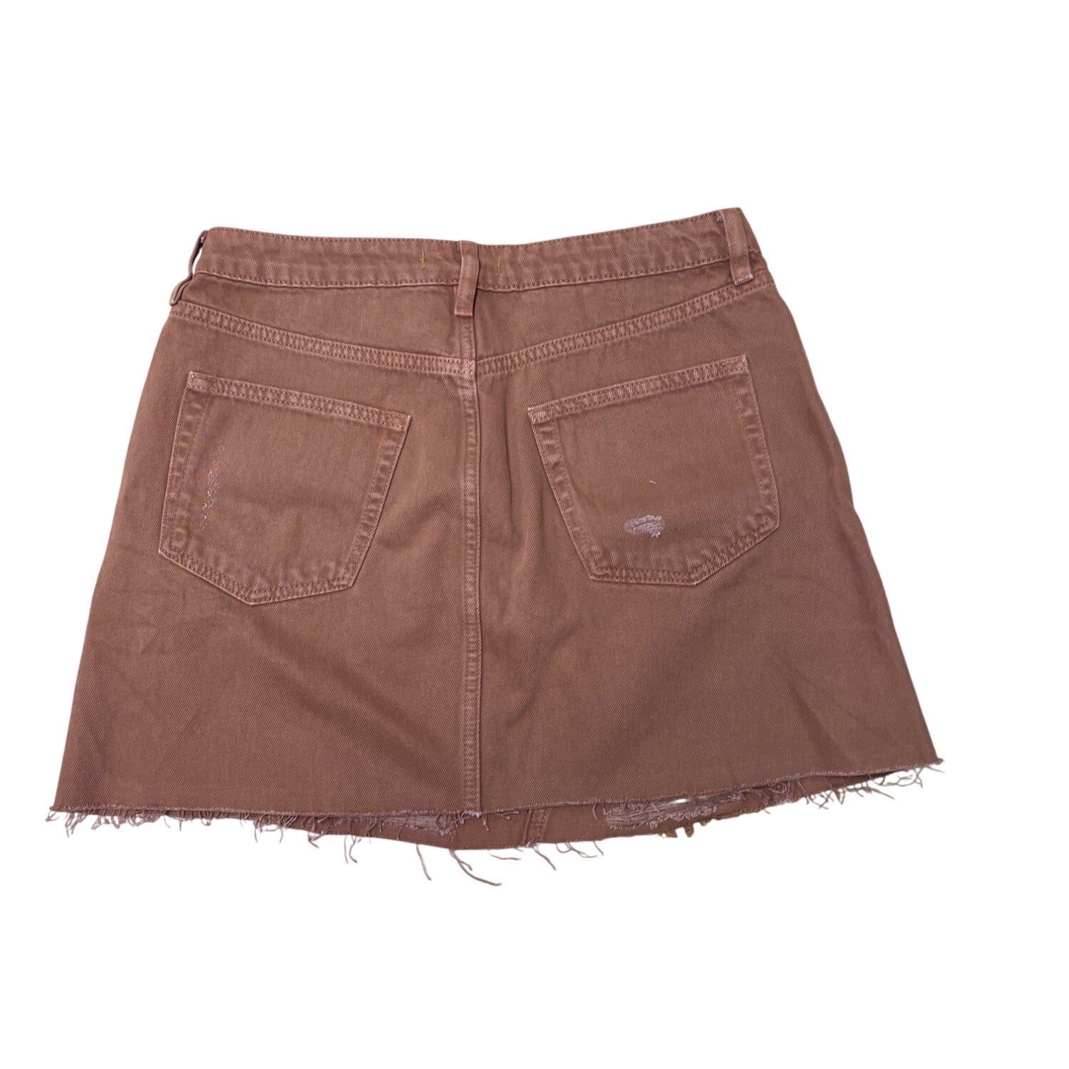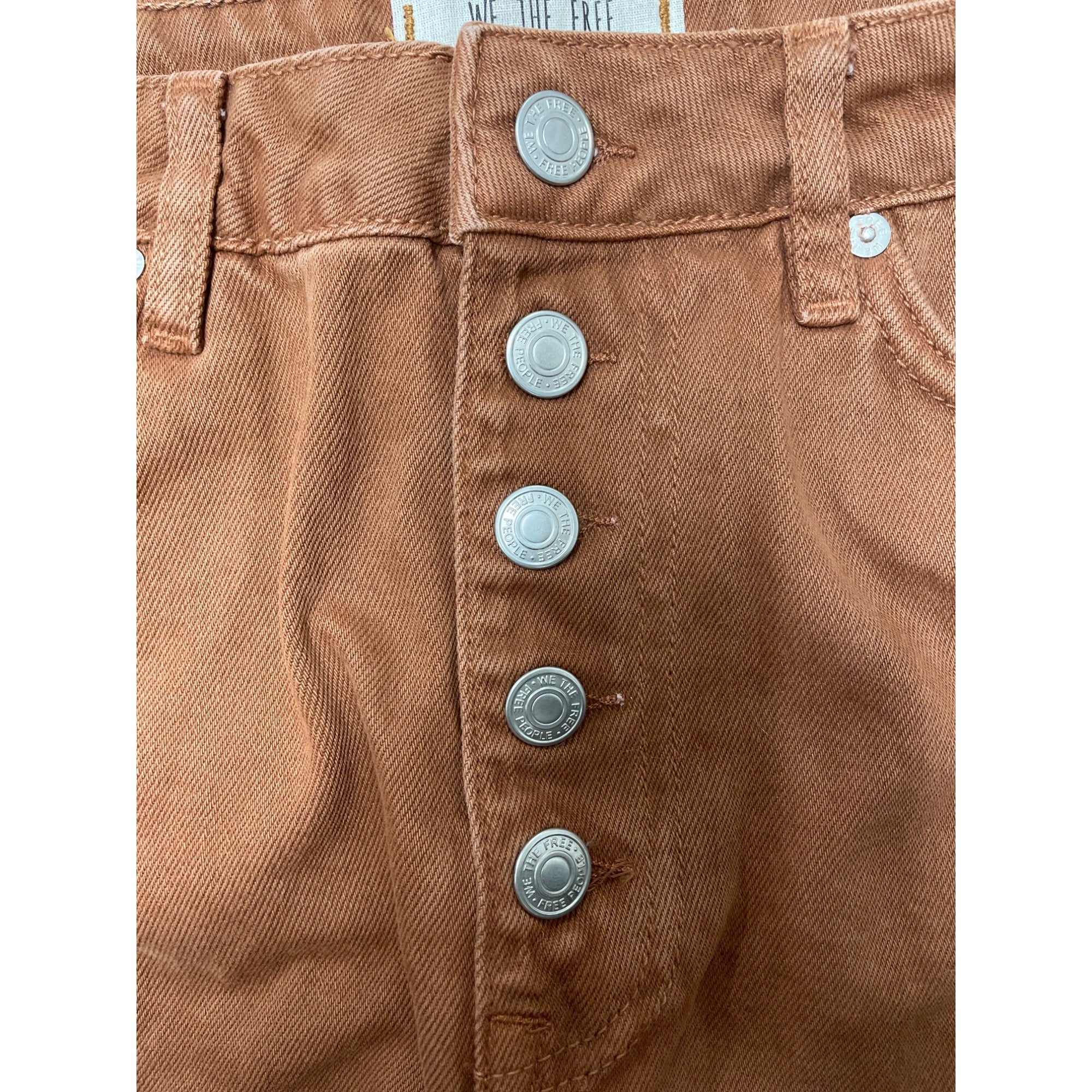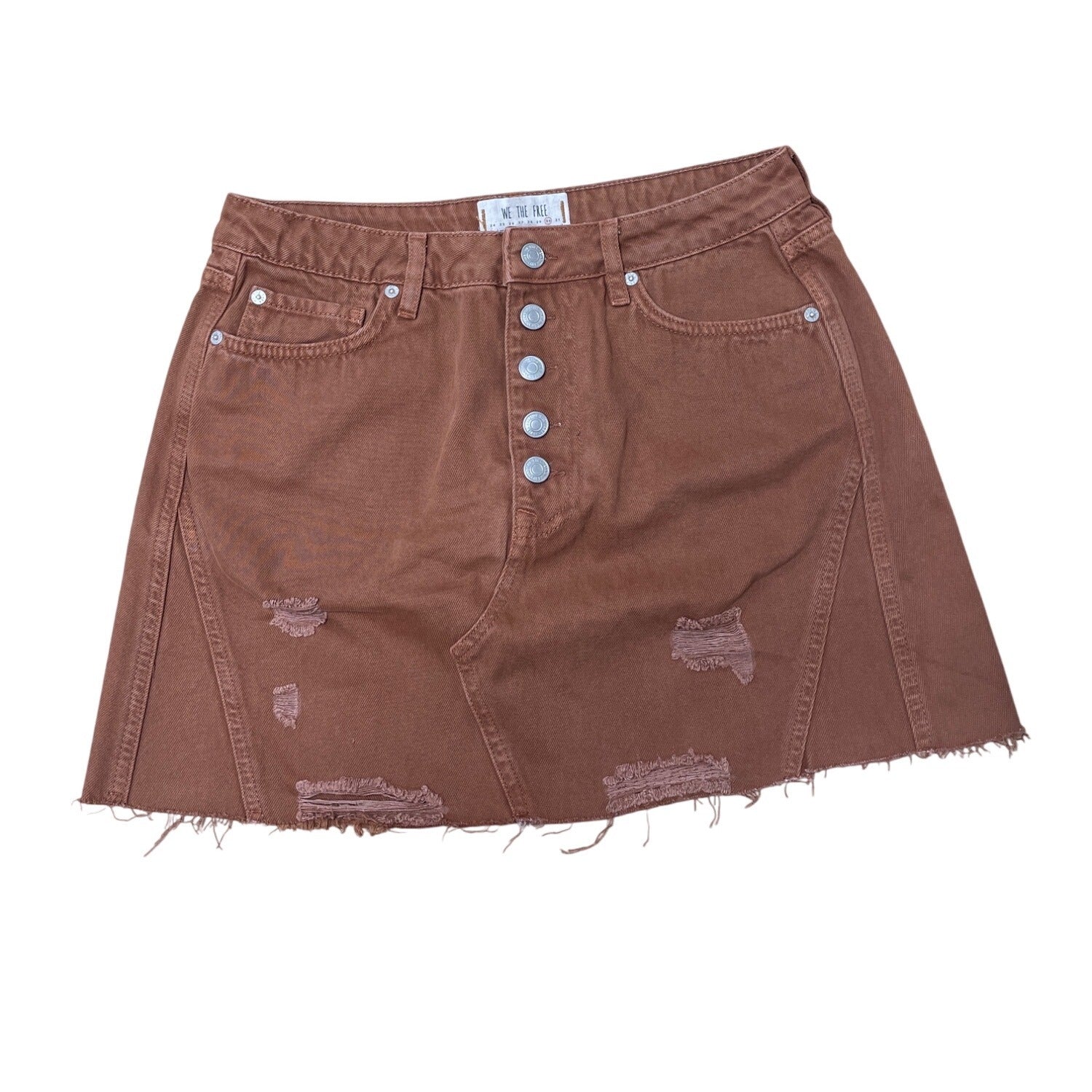 We The Free Womens Brown Denim Distressed Mini Skirt Button Closure Size 30