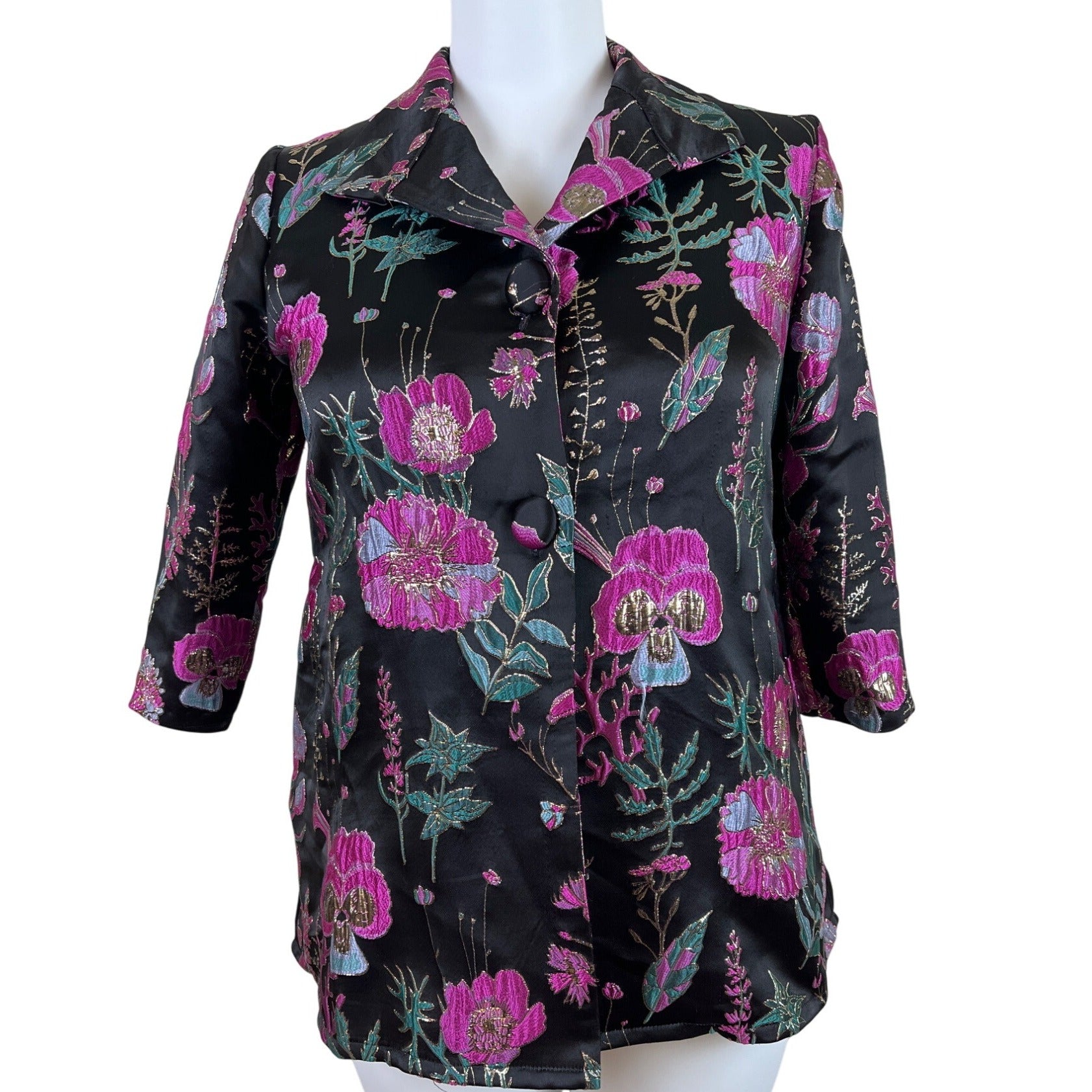 Weavz Floral Embroidered Women’s Black Blazer With 3/4 Sleeves Size L