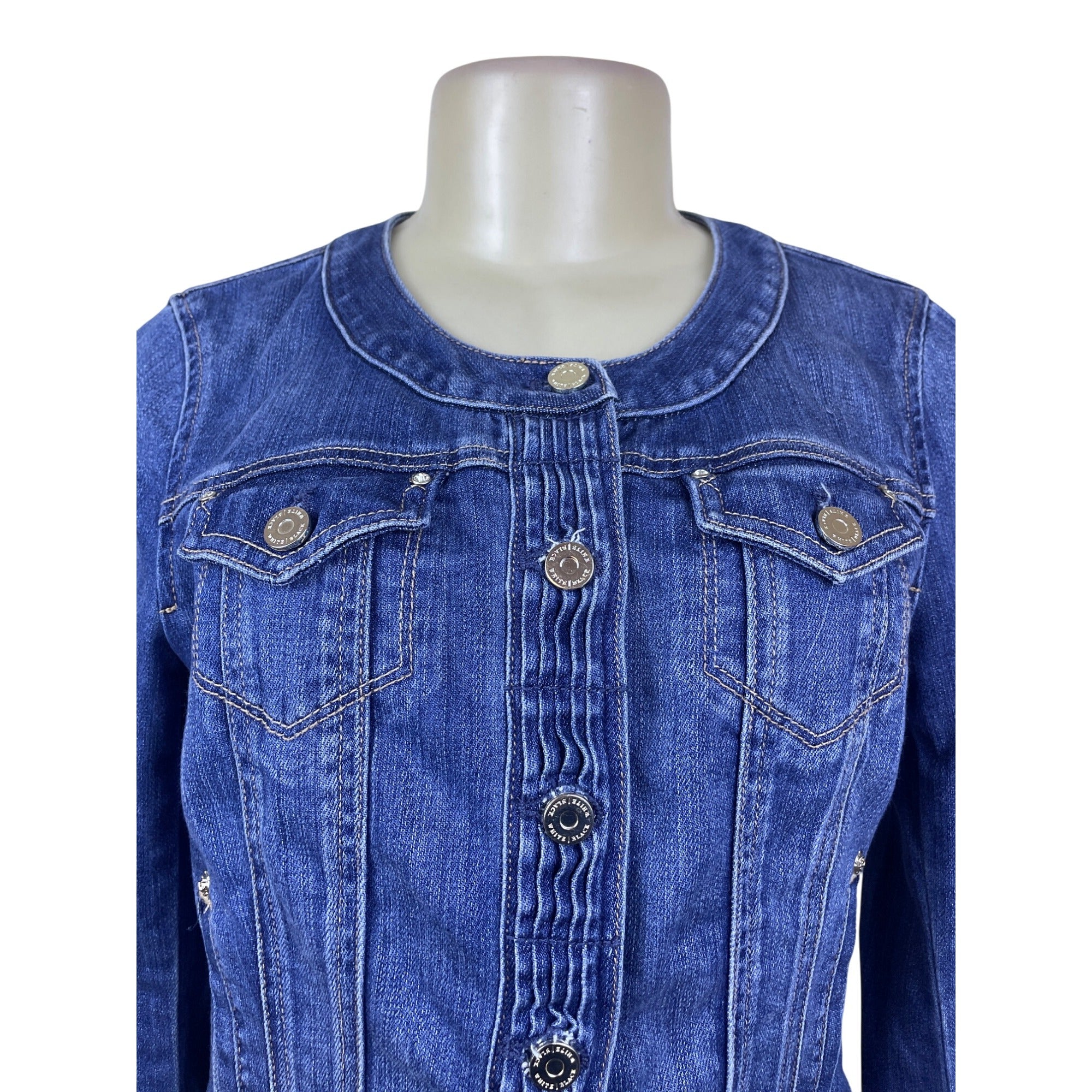 White House Black Market Women’s Blue Denim Button Front Fitted Jacket Size 4