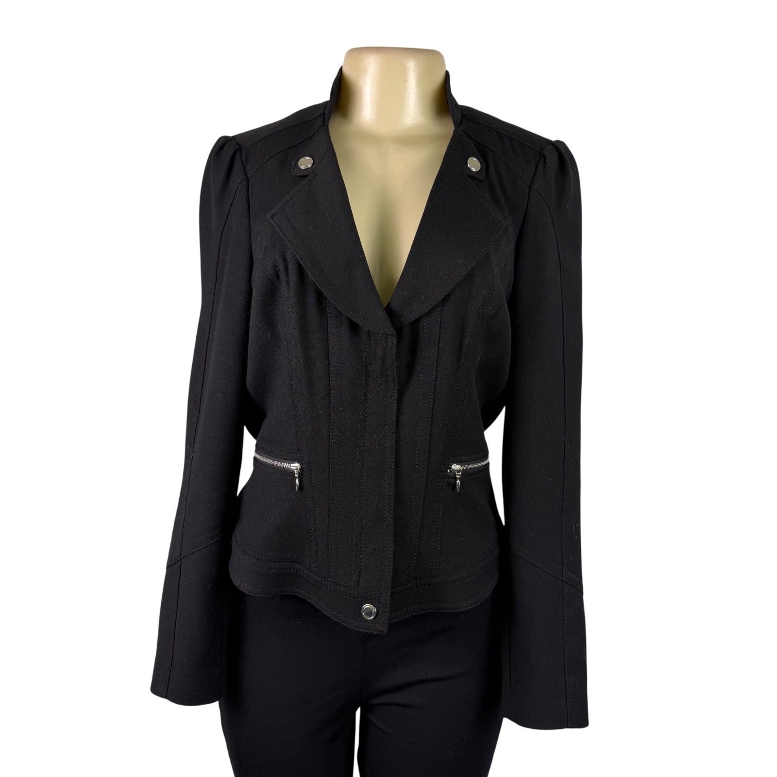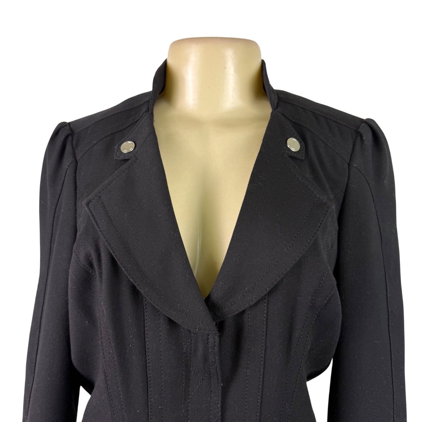White House Black Market Womens Black Polyester Blend Fitted Blazer Jacket Sz 6