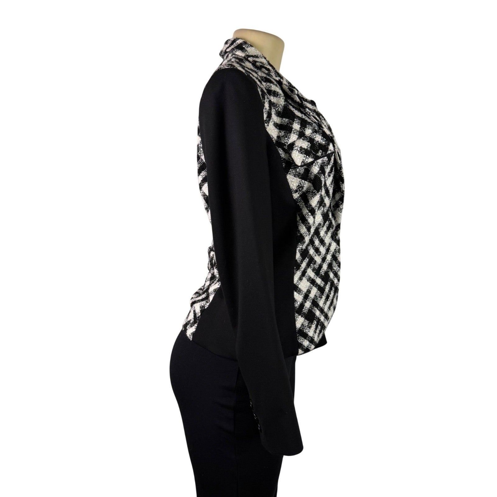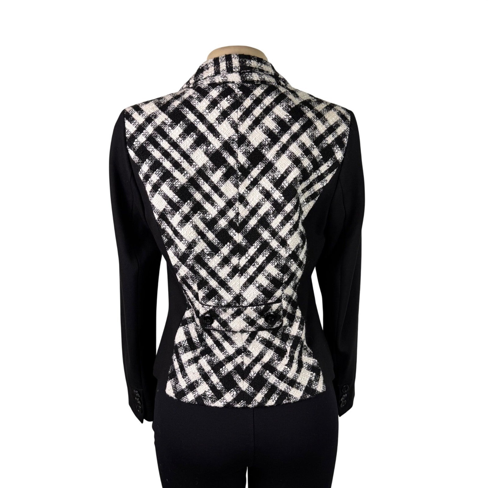White House Black Market Womens Black & White Plaid Long Sleeve Blazer Sz 6