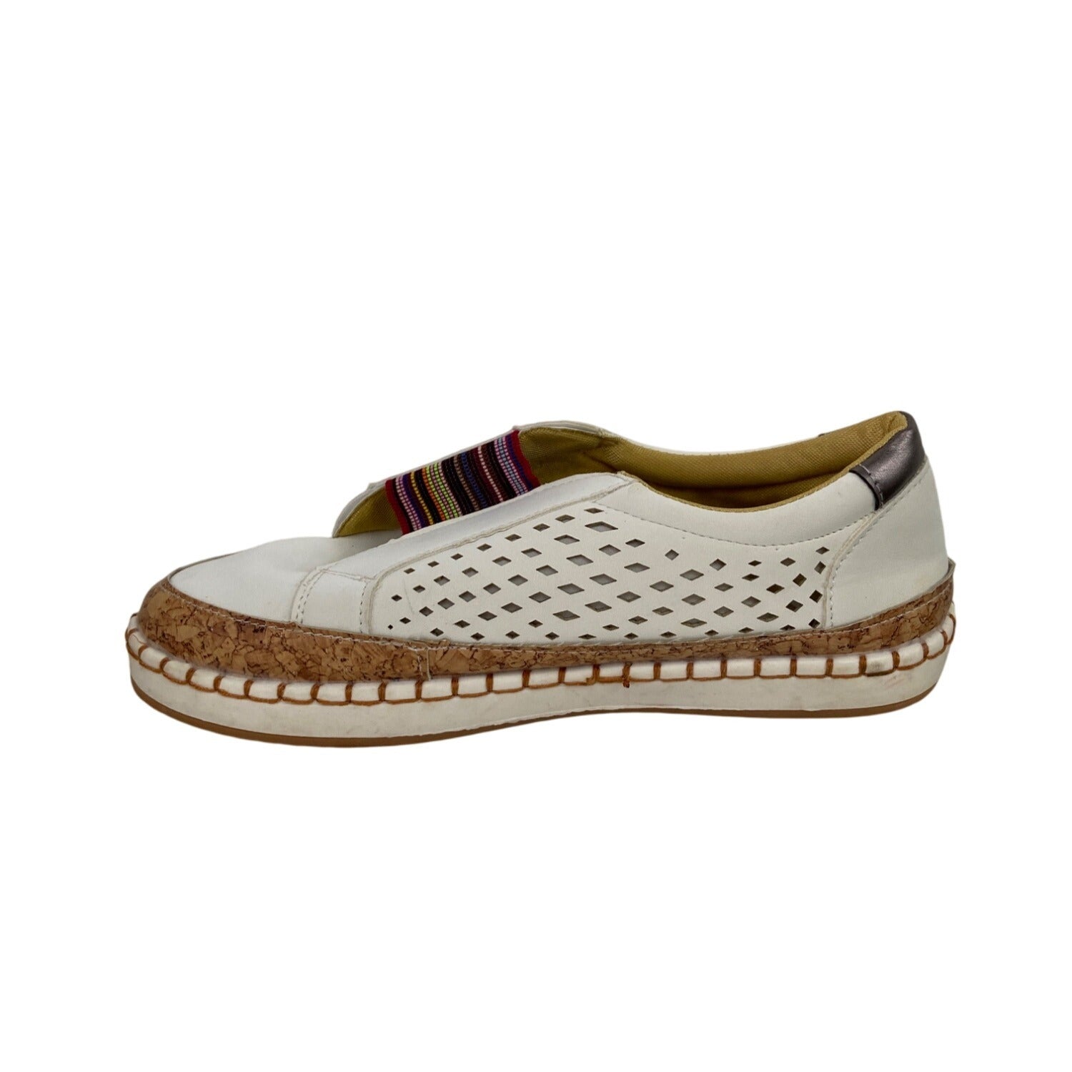White Slip-On Woven Leather Shoes With Cork Trim For Women Size
