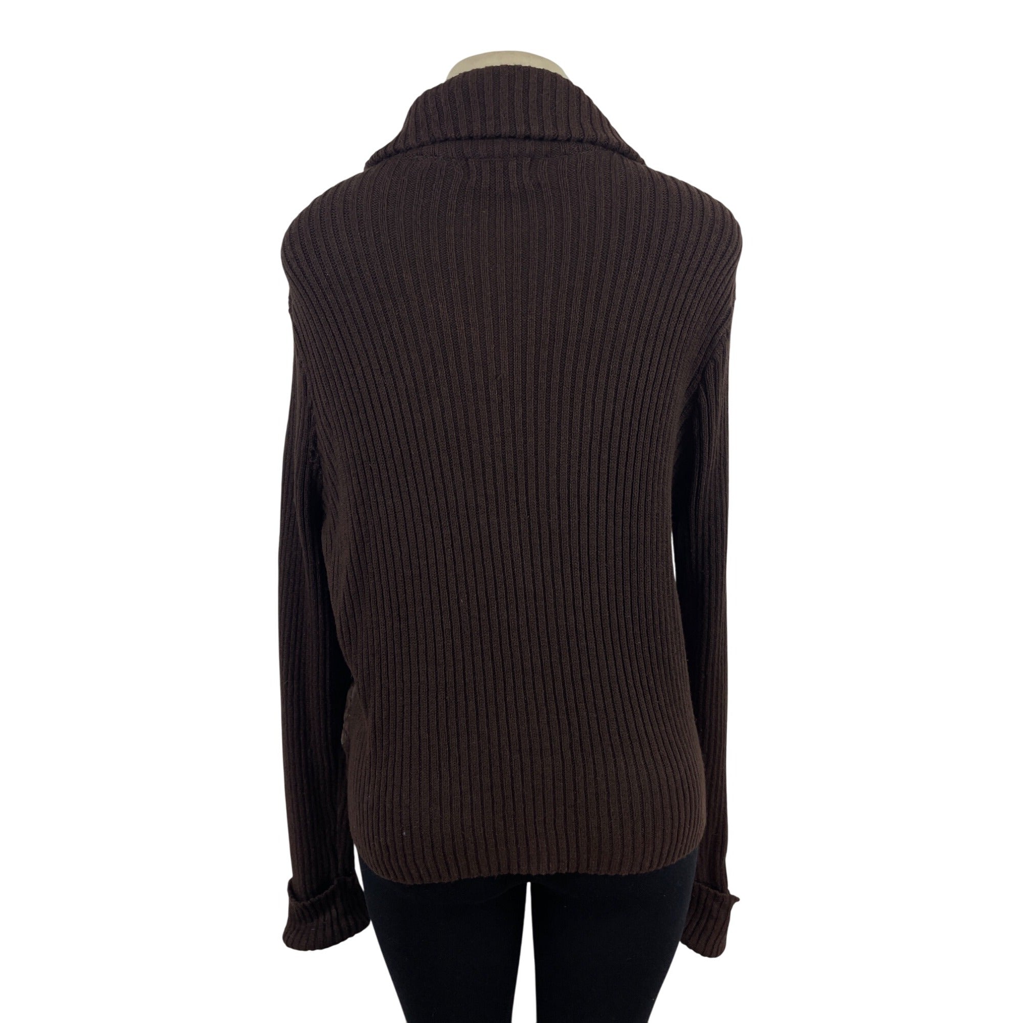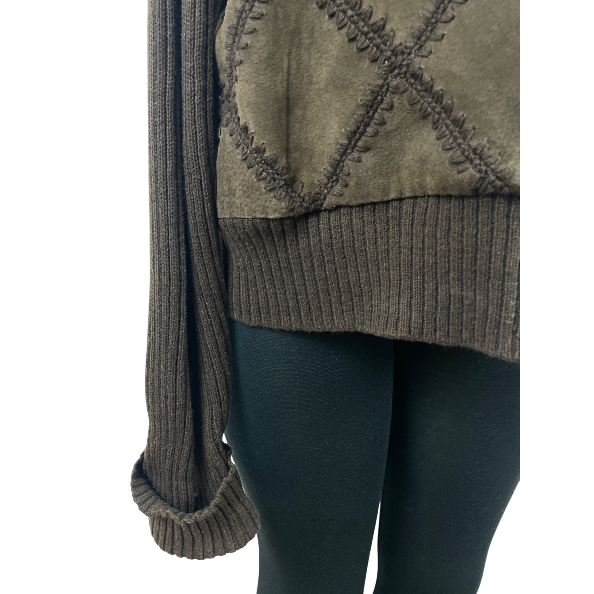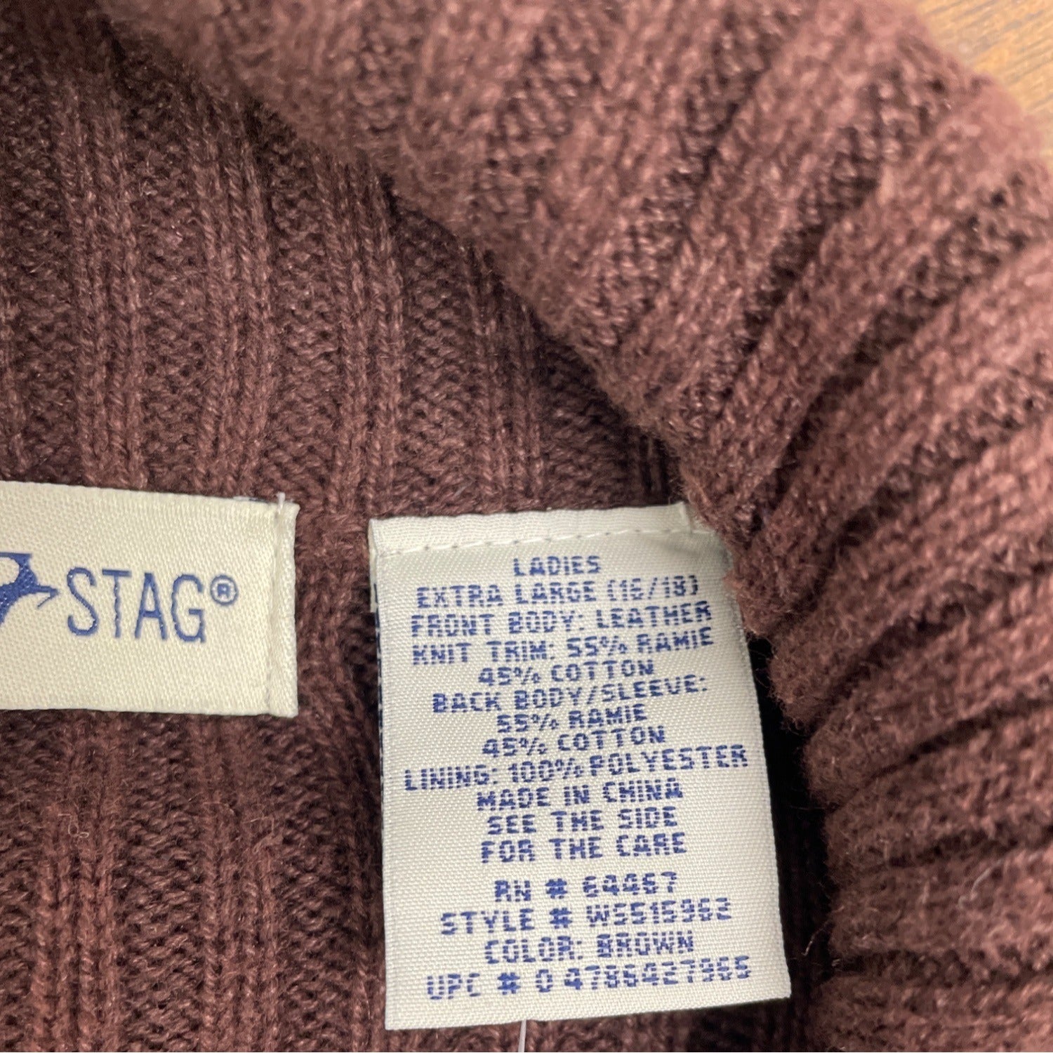 White Stag Women Brown Crochet Suede Jacket Long Sleeve Ribbed Knit Size XL