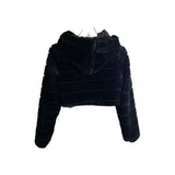 Wildcat Womens Black Faux Fur Hooded Cropped Jacket Size S Stylish Warm Outerwear