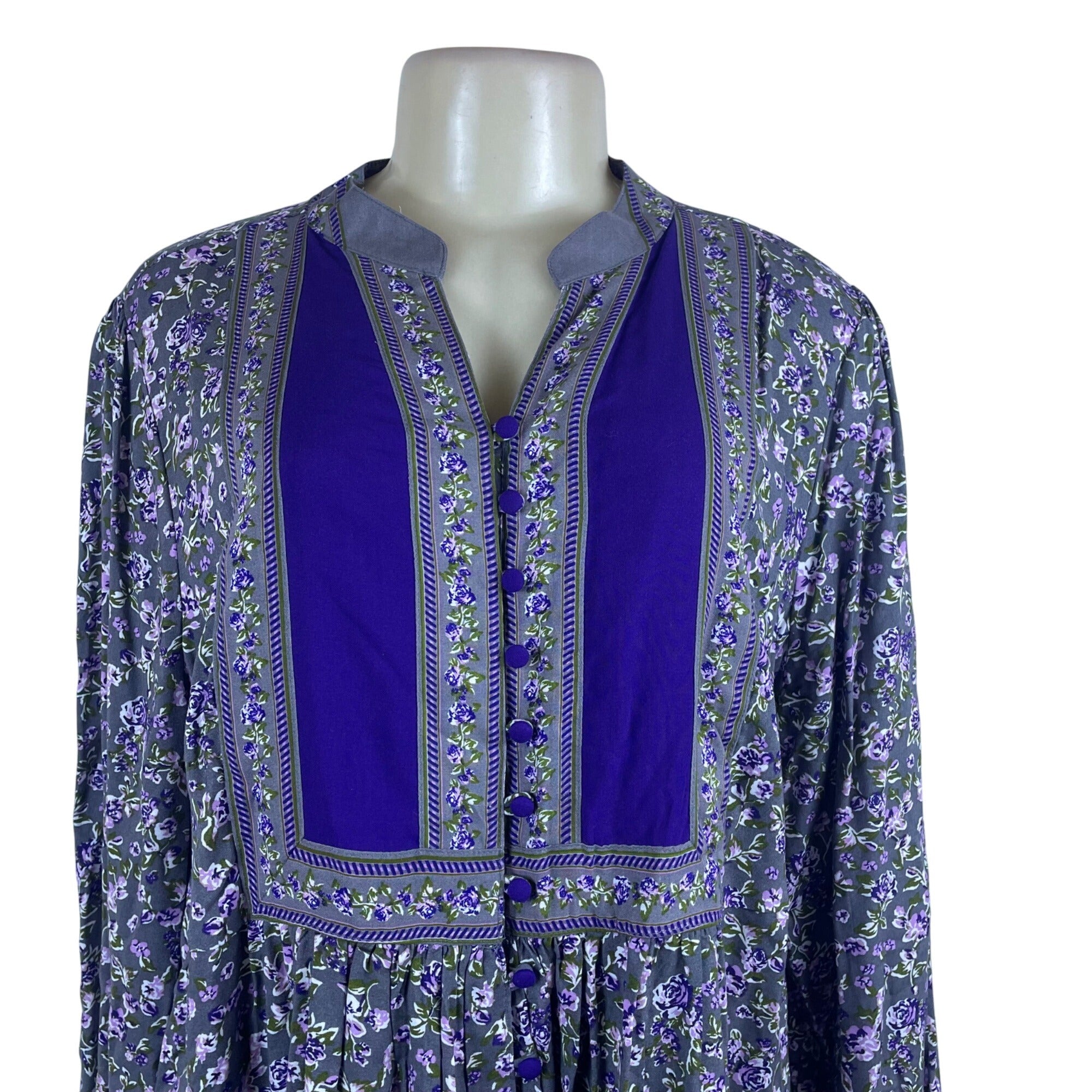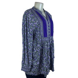 Woman Within Womens Purple Floral Tunic Button Front Long Sleeve Rayon Size M