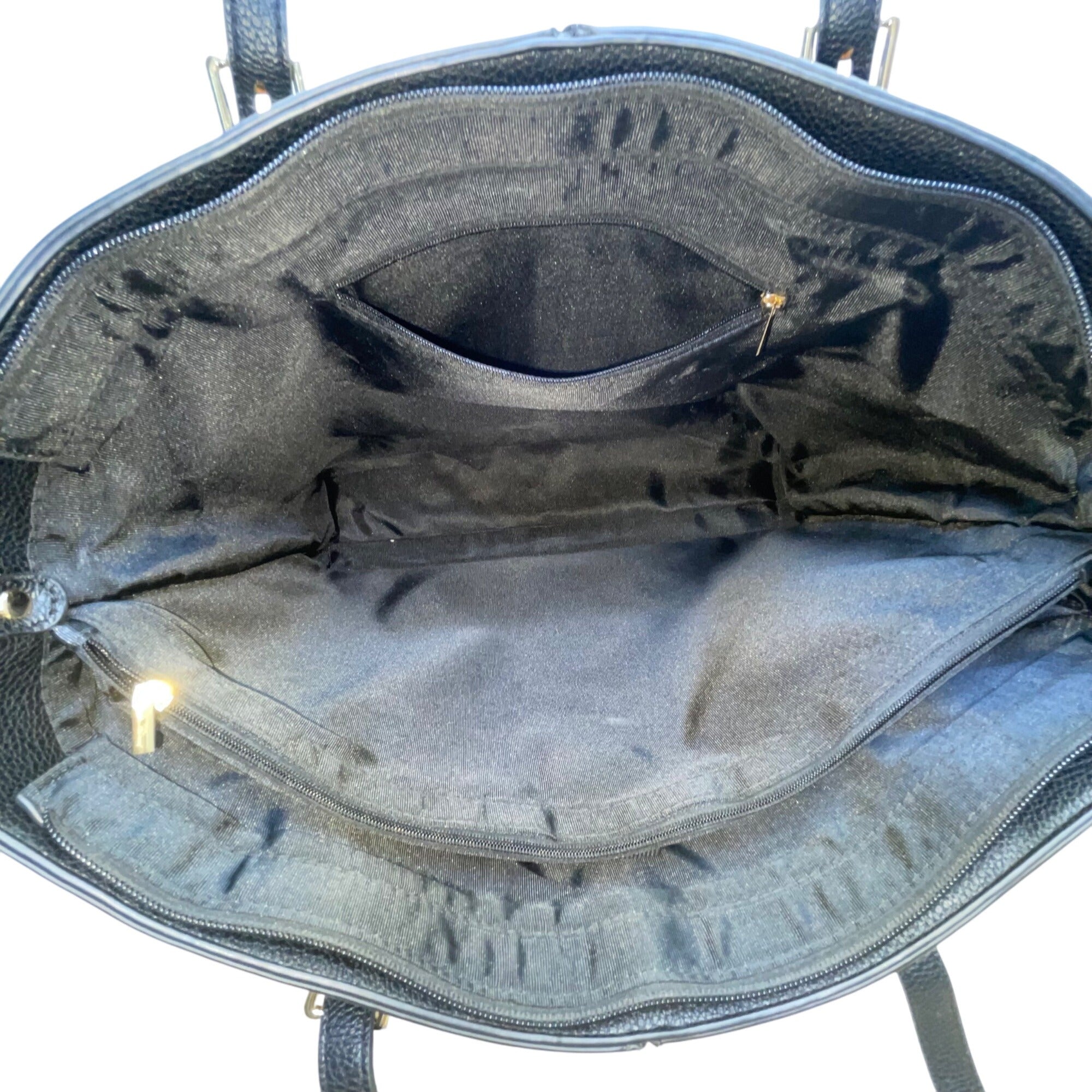 Women’s Black Faux Leather With Adjustable Straps & Gold Accents Tote Bag