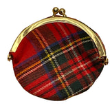 Women’s Red Plaid Wool With Gold Metal Kiss Lock & Frame Closure Coin Purse