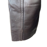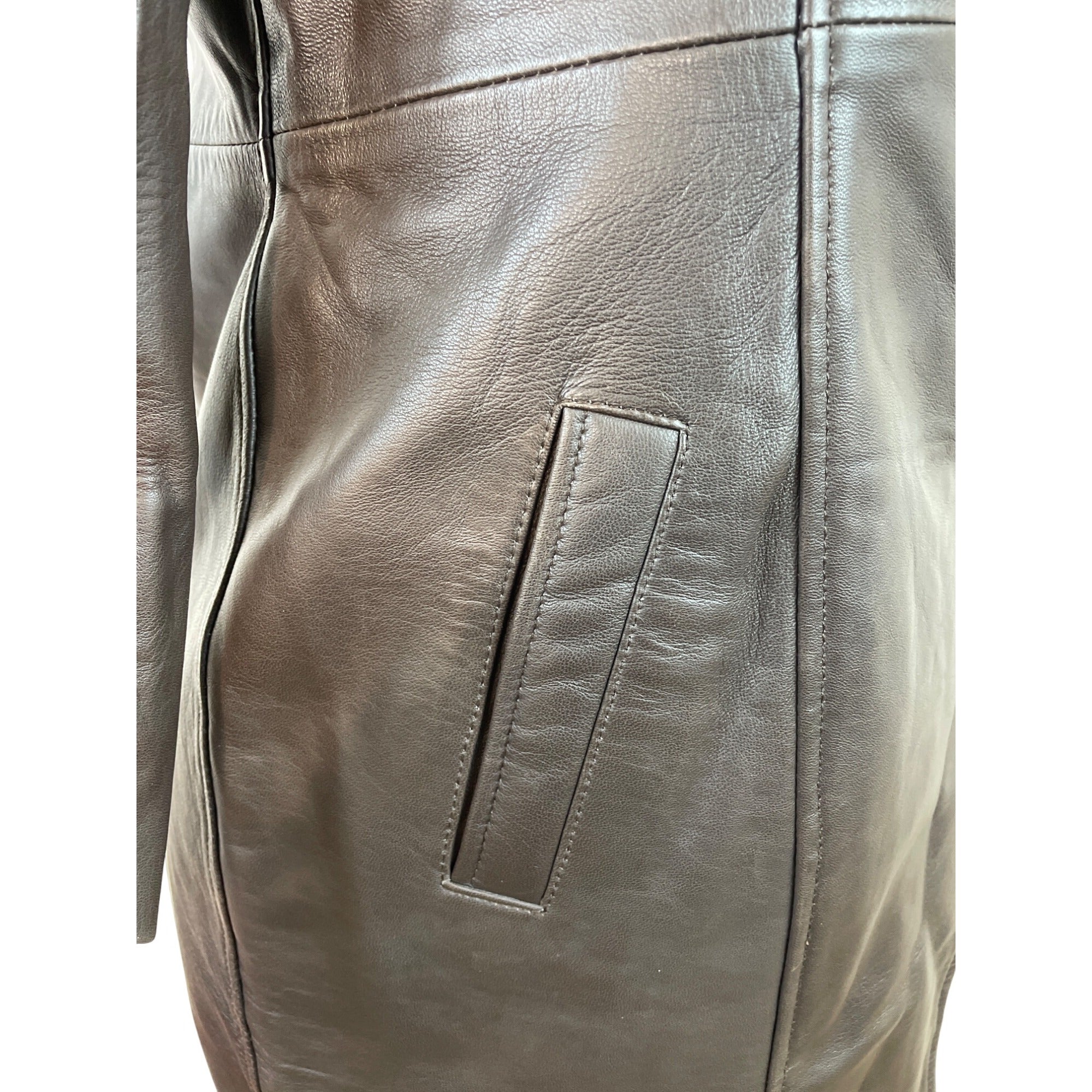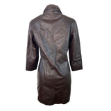 Women's Brown Leather Button Up Trench Coat With Faux Fur Lining