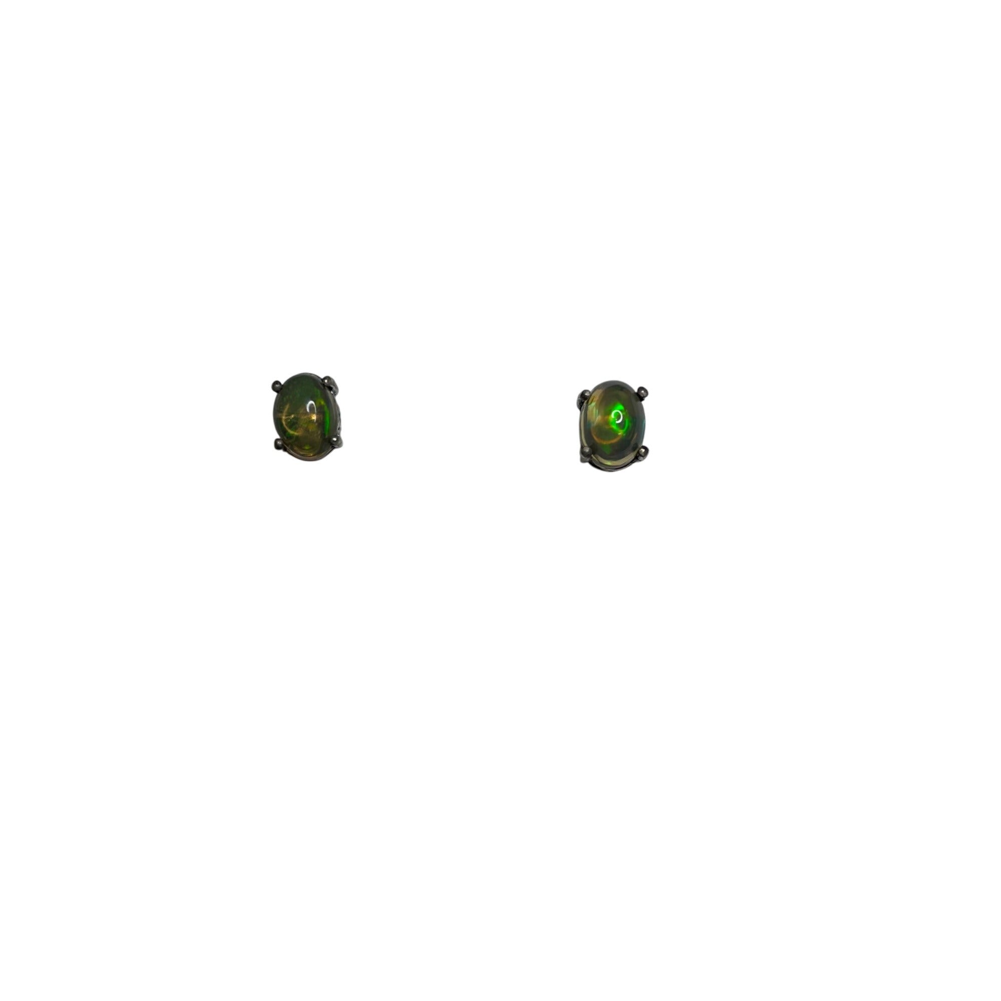 Womens Green Silver Oval Stud Earrings With Play Of Color