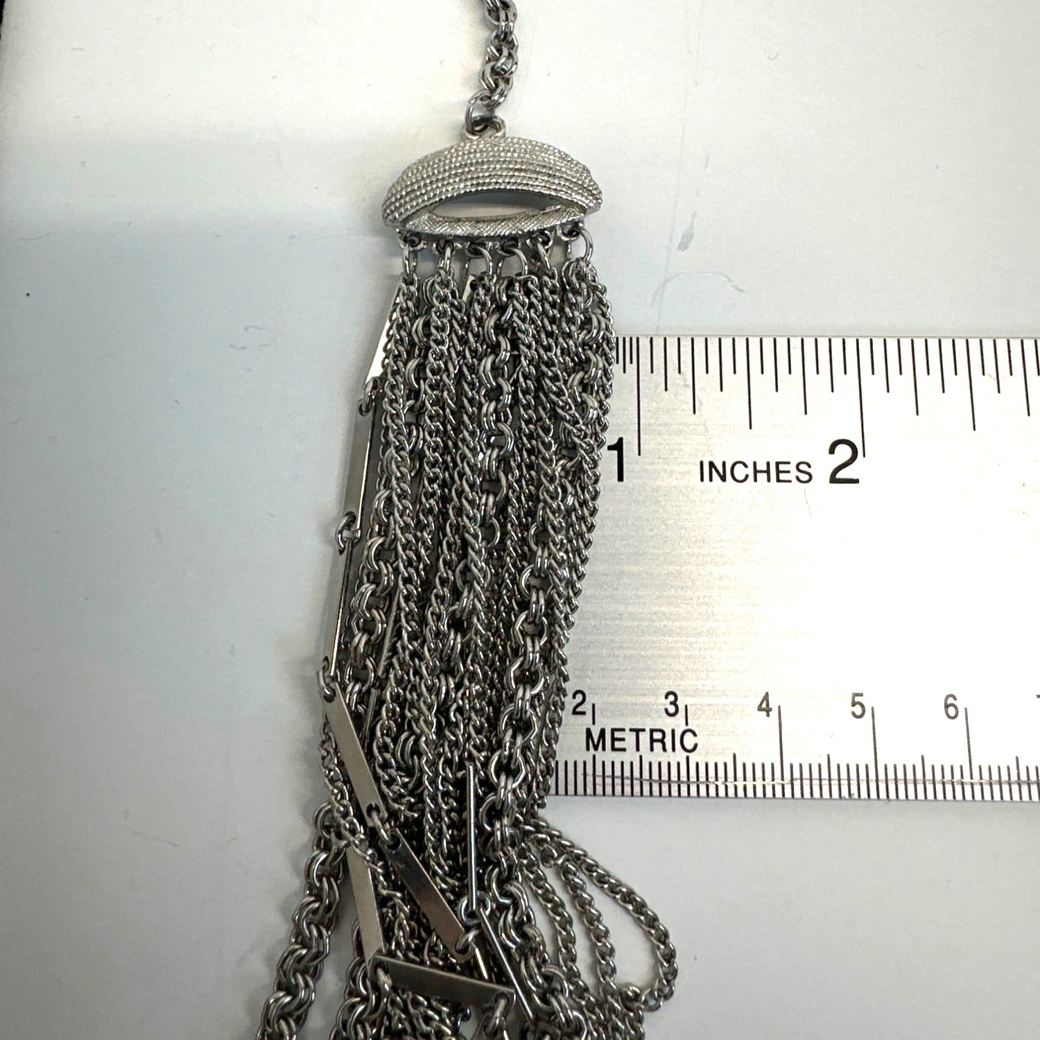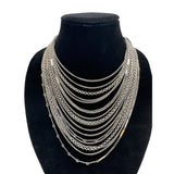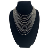 Women's Silver Tone Multi Layer Bib Chain Necklace - 17in