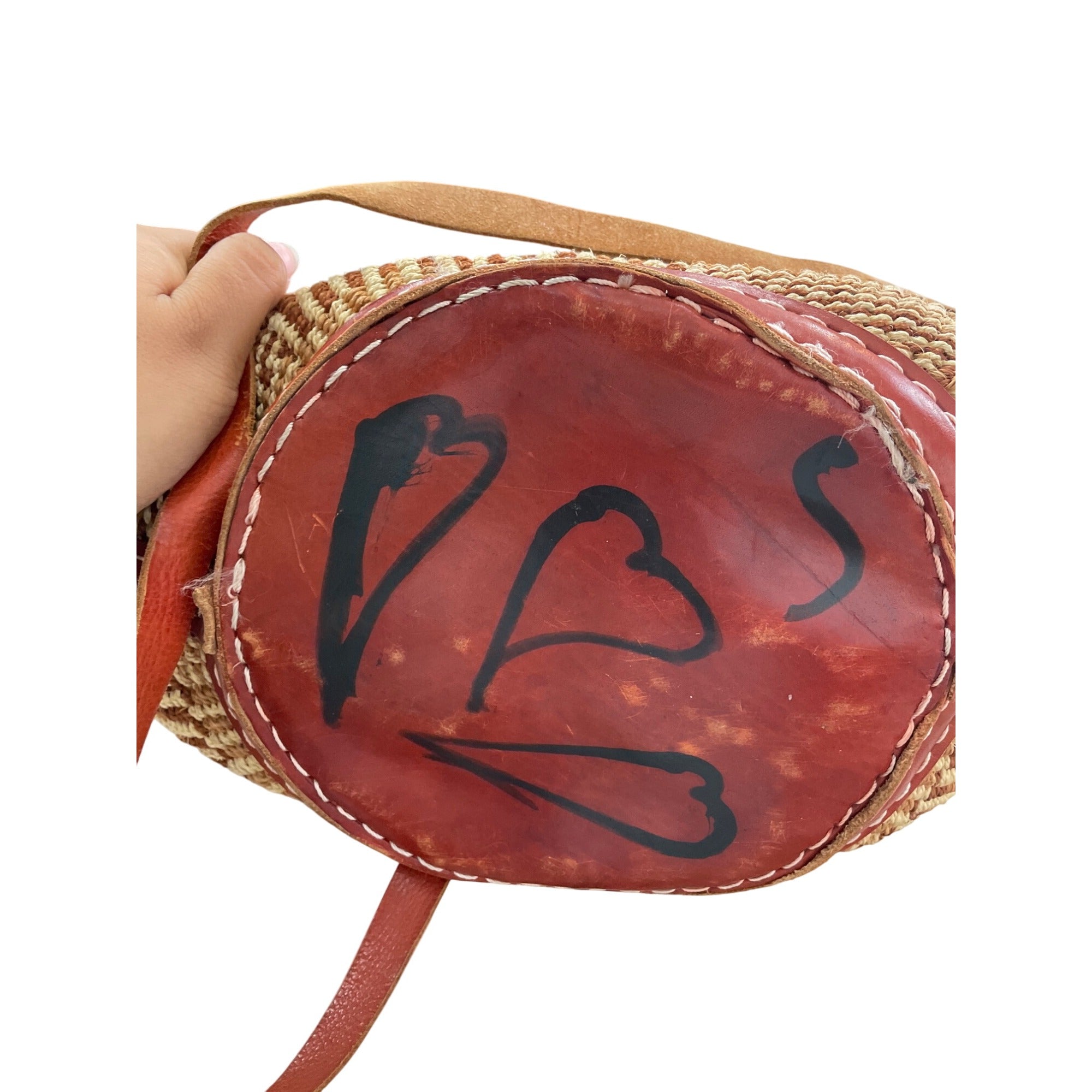 Woven Rattan & Leather Shoulder Bag With Zipper Closure And Patterned Design