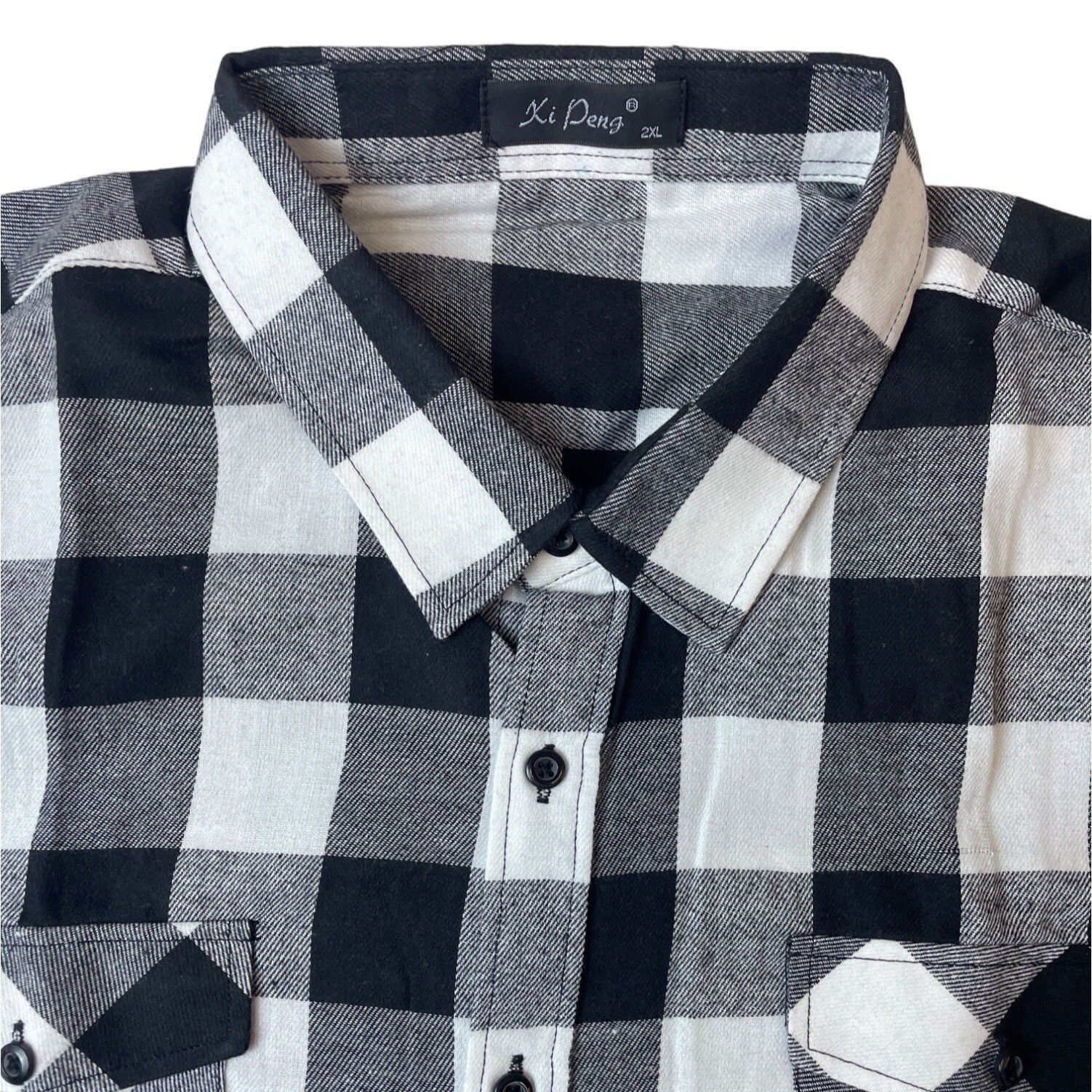 Xi Peng Men's Black White Gingham Shirt Sz XXL