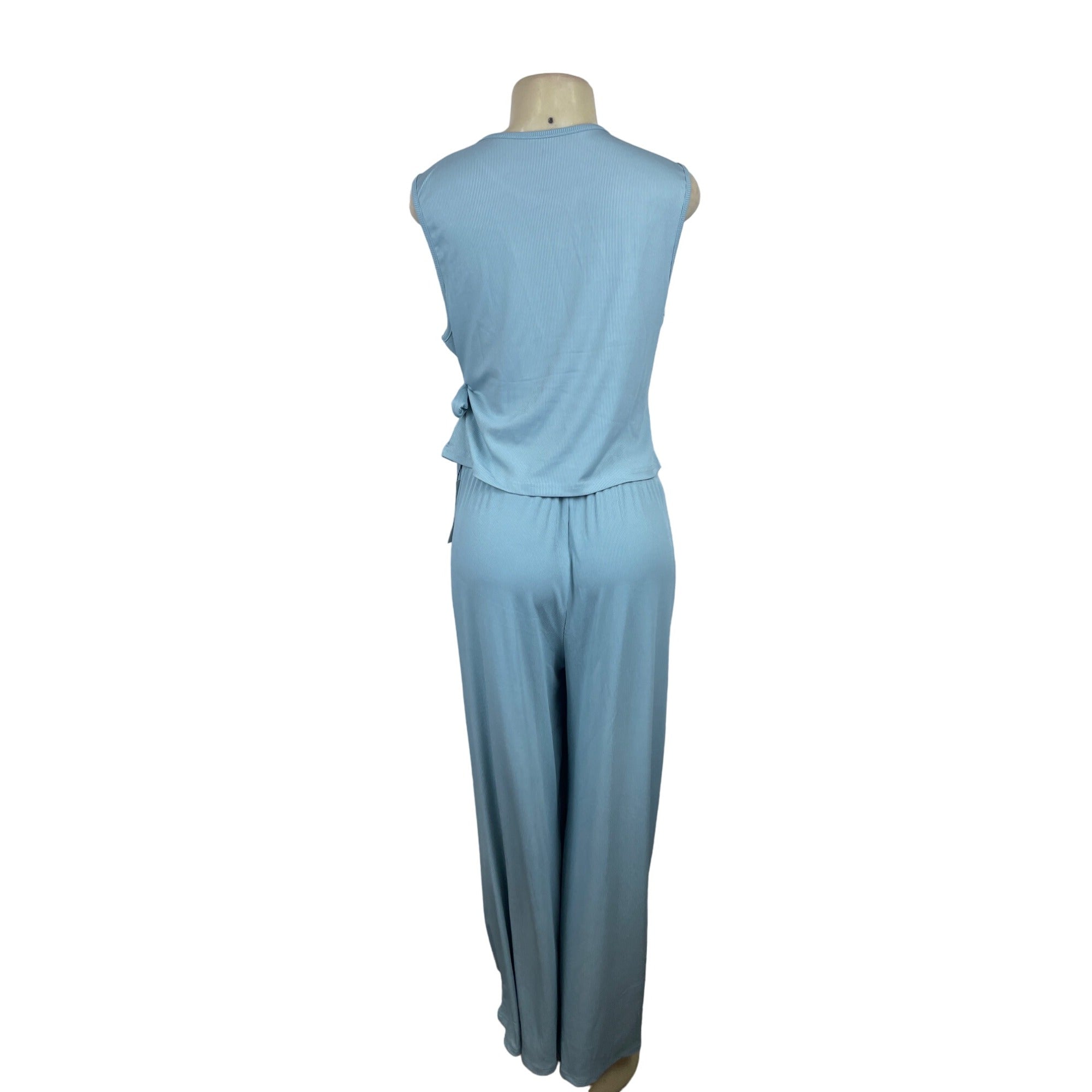 Yozy Light Blue Sleeveless Casual Set with Tie Waist Wide and Leg Size XXL