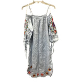 Zara Women Blue Embroidered Off-Shoulder Floral Midi Dress Cotton Blend Size OS