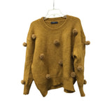 Zara Women Mustard Yellow Knit Sweater Pom Pom Embellished Long Sleeve Small