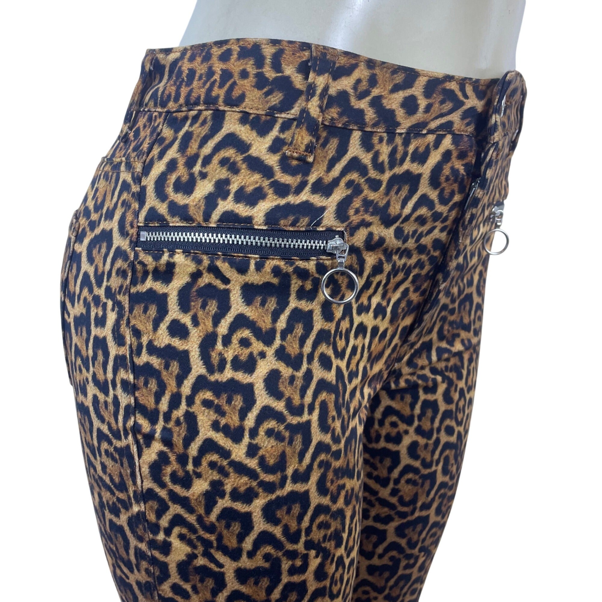 Zara Women’s Leopard Print Skinny Pants With Zipper Details Size 6 - New