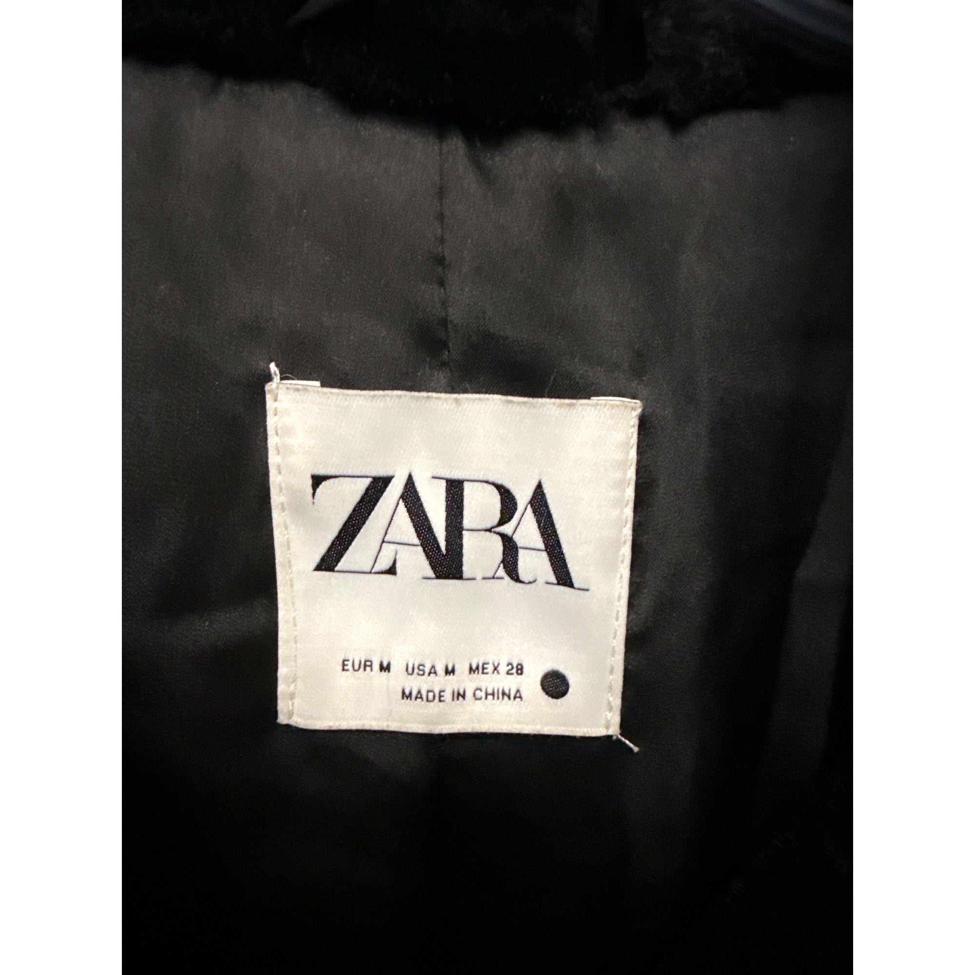 Zara Womens Black Faux Fur Jacket Zipper Pockets Soft Plush Fabric Size M