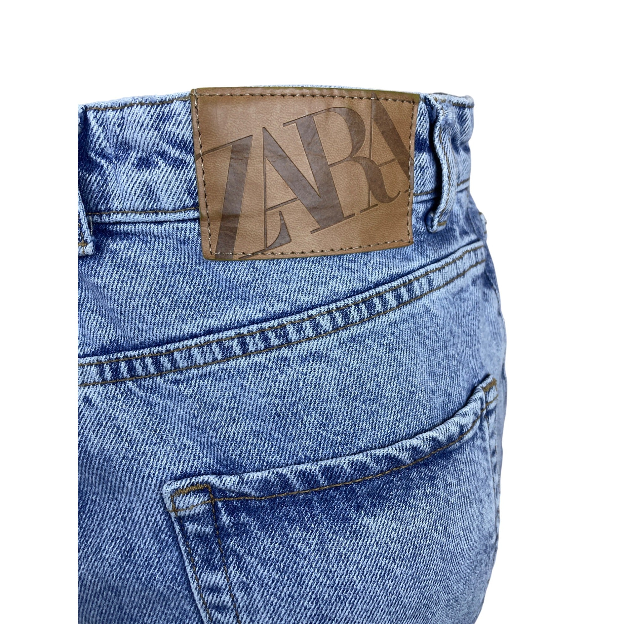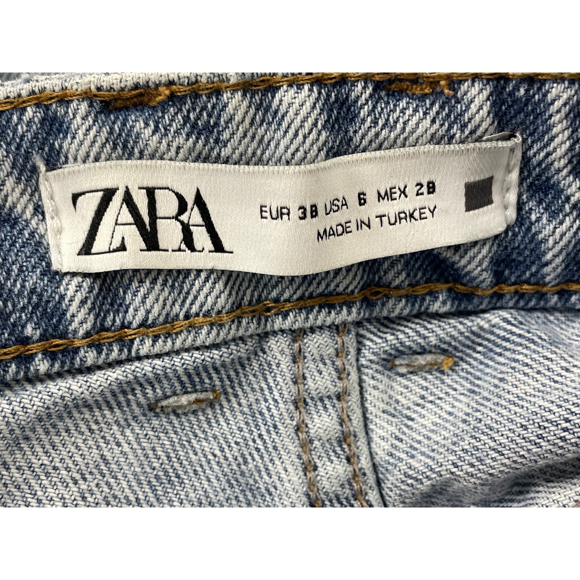 Zara Women's Blue Washed Denim High-Rise Crop Jeans With Frayed Hem Sz 6